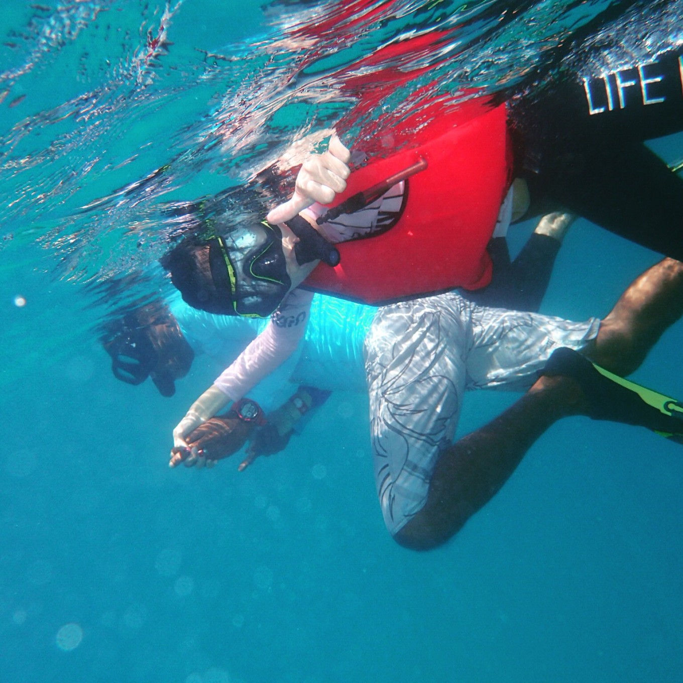 本来没打算再去浮潜了,因为我觉得我去,教练会很辛苦的😂😱早上去吃早餐的路上,碰到了浮潜教练,他和我热情地打招呼,还和我约一会儿叫我一起去浮潜🤓😁