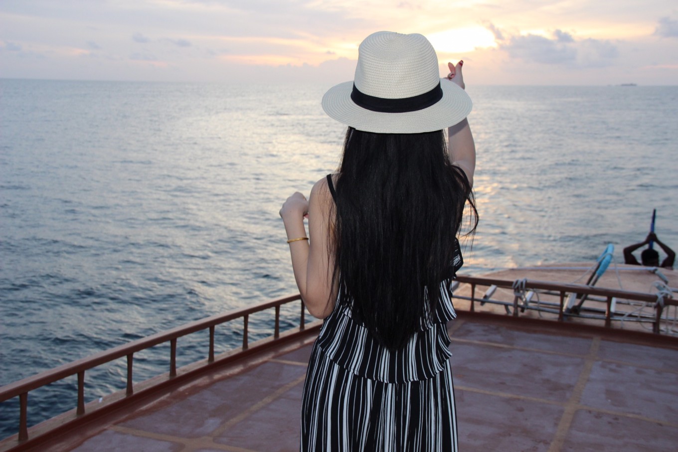垂钓结束后,正好可以看日落,这个时候小黑会给大家饮料和水果……返程的时候可以到船顶上看日落,很美