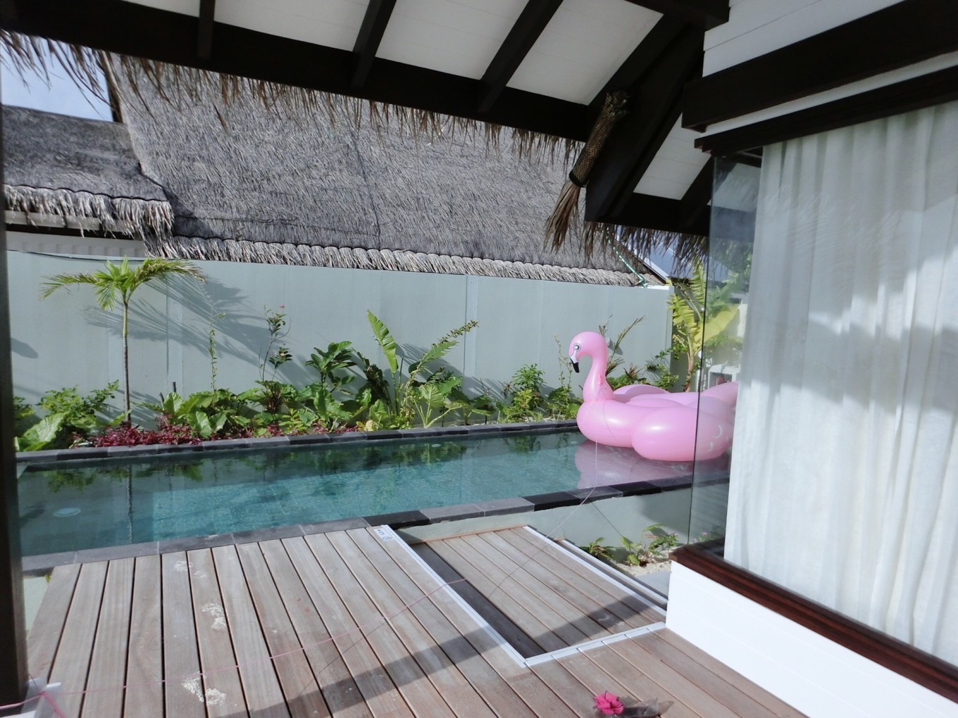 前台预约沟通好后,把行李放在前台(之后会有小黑拿到房间的),就可以去吃饭啦。我定的是泳池沙屋+泳池水屋