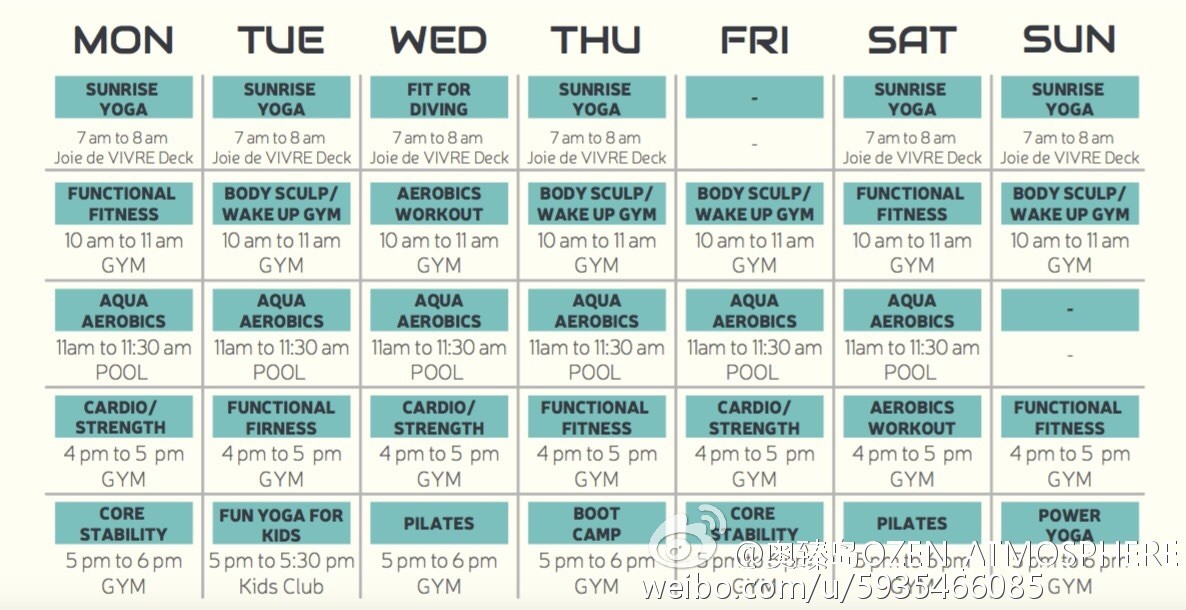 奥臻岛9月份全新推出每日健身课程,有日出瑜伽,水上有氧操,有氧运动,普拉提,身体塑形,健美操,还有每周二的专属儿童瑜伽课程👏