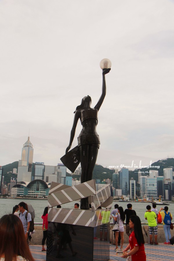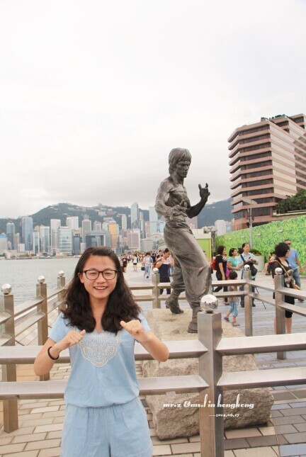 觉得这句话很赞啊~ 香港的第一站——星光大道,佐敦离尖东真的很近,地铁就才一站路,走路过去也才10来分钟,所以我们在香港很多时候都是在压马路。因为不是周末,所以星光大道人也不算很多。今天的天气不是很好,天气灰蒙蒙的,跟马代的天空形成强烈的反差啊。。。