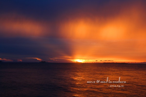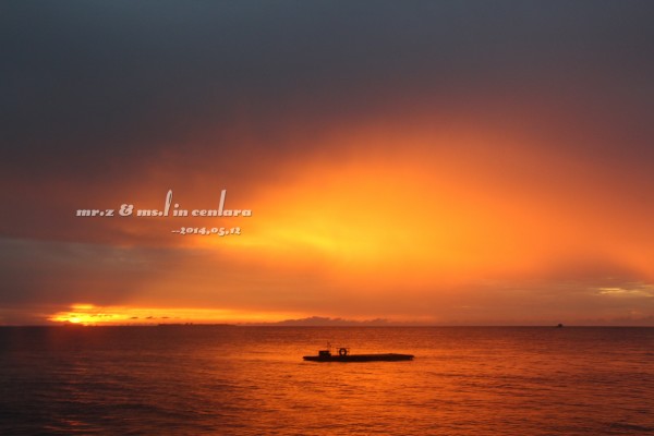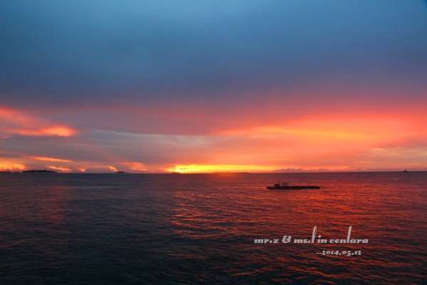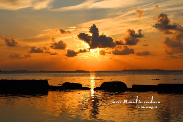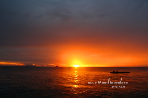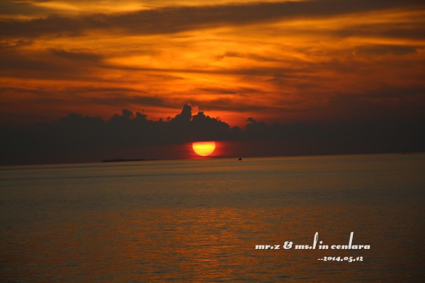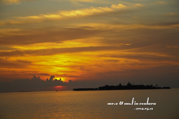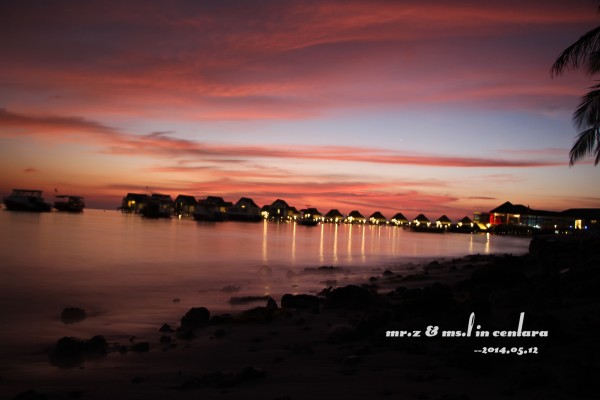 岛上的小黑乐队,很喜欢这3个非常喜感的大叔,他们每天都会在岛上的3个餐厅来回的表演,不用收费的,还可以点歌,神马日语、韩语、英语、中文全部都会,太强大了。。。 ——Day 3 昨晚,在睡前就跟老婆商量好了,今天要起来看一次日出的,结果估计错误,时间迟了一点点,等走到海边的时候太阳已经升起来了,只好匆匆的补拍了几张照片。。