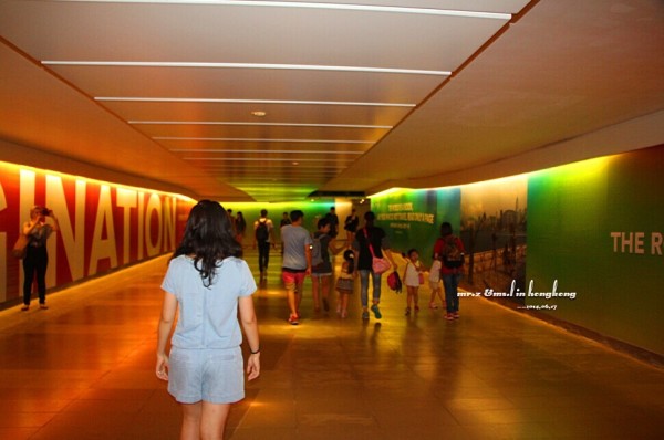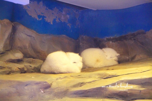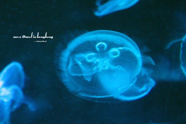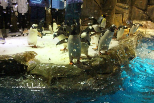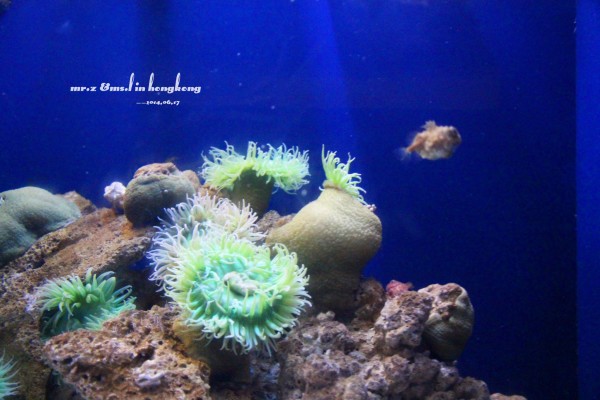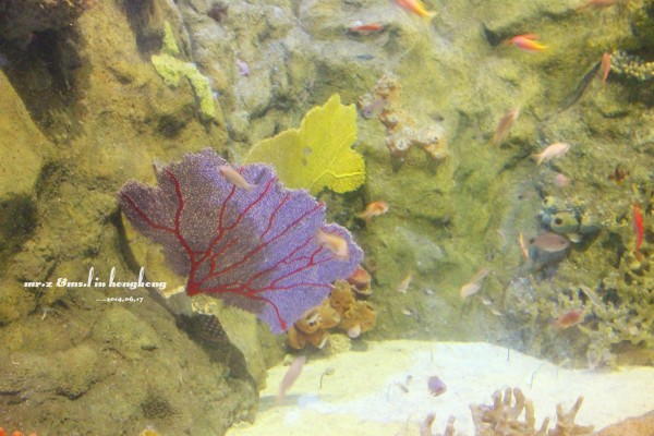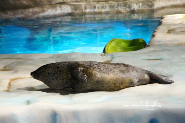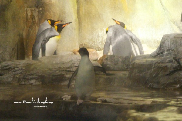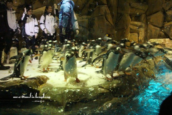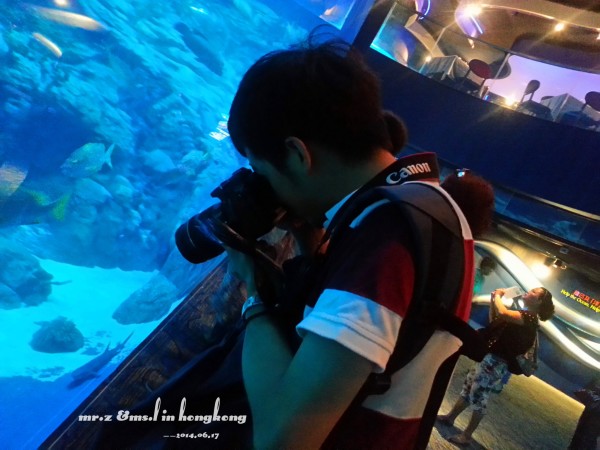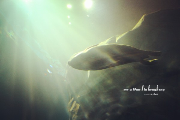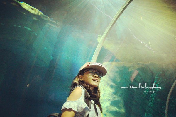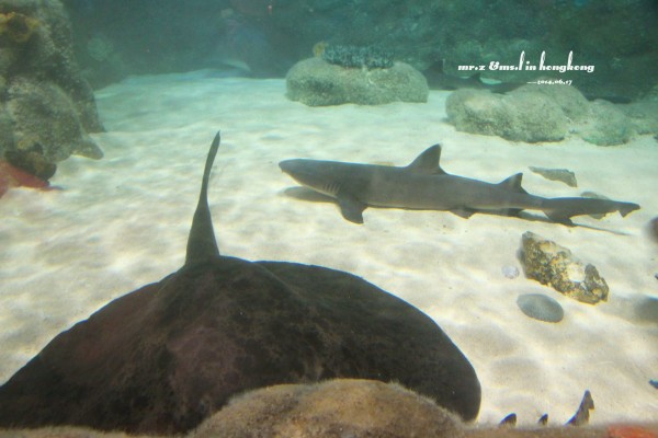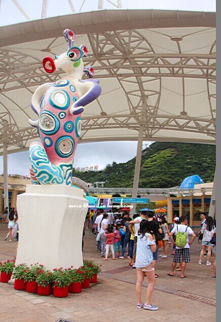 排队等检票 tips: 1、关于游园的路线建议先直接坐缆车上山顶去玩游乐设施,等傍晚再下来参观山脚下的各种馆。因为刚开园时,海洋馆的门口队伍是最长的,而山顶上的游乐设施到傍晚6点就停止使用了,山脚的却比较迟,山上的玩完再下来比较节省时间。 2、海洋公园是禁止自带食物的,会检查随身的背包,据说有人在门口曾经花了两分钟干嚼了一包泡面。。。其实自带是可以的,藏深点就好。。。 进门的第一站,我们就去了海洋馆参观,虽然刚从马代回来马上去海洋馆有点怪,但是既然来了总是要看的。。。