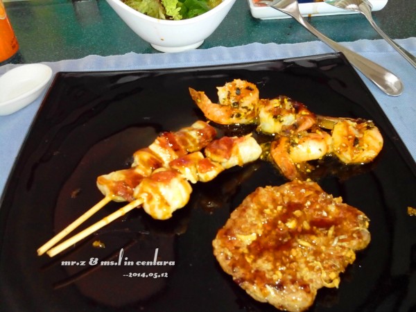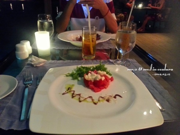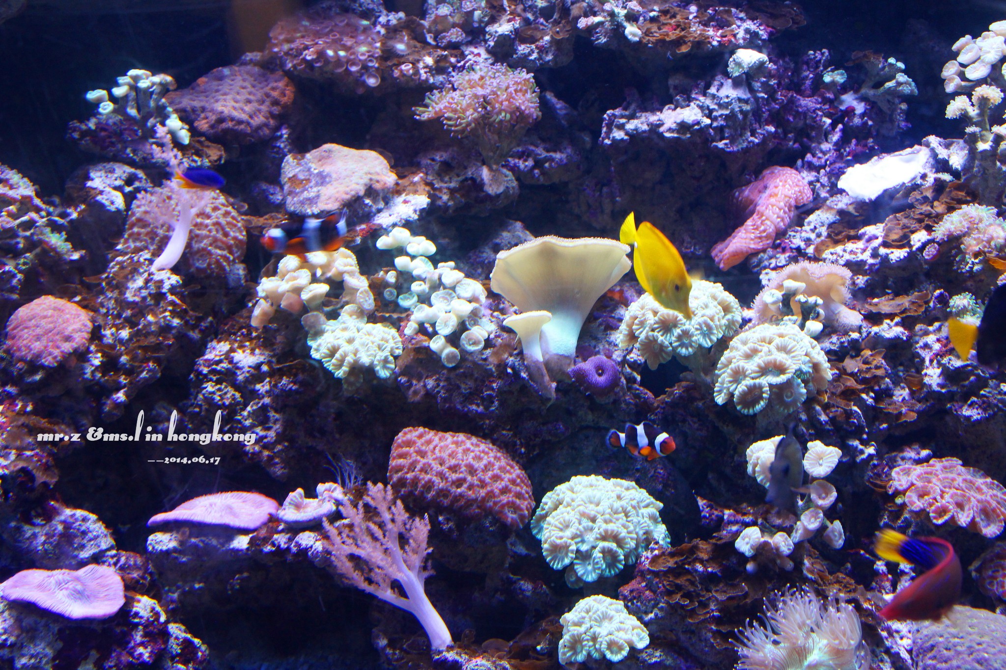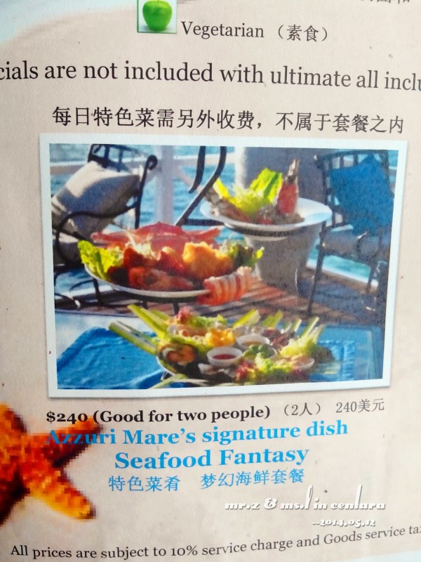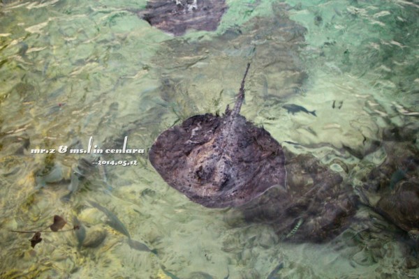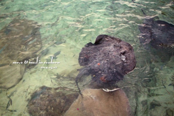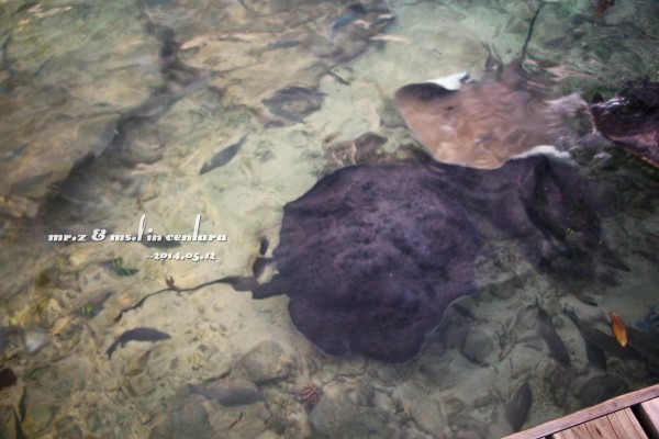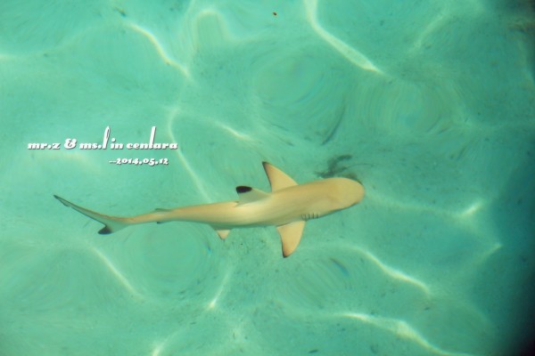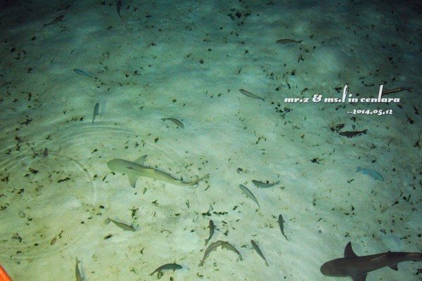 晚上的晚餐我们是在意大利餐厅吃的~ 吃饭的时候,这些鱼都被餐厅的灯光吸引过来了,那对鲨鱼夫妻也出来遛弯了~