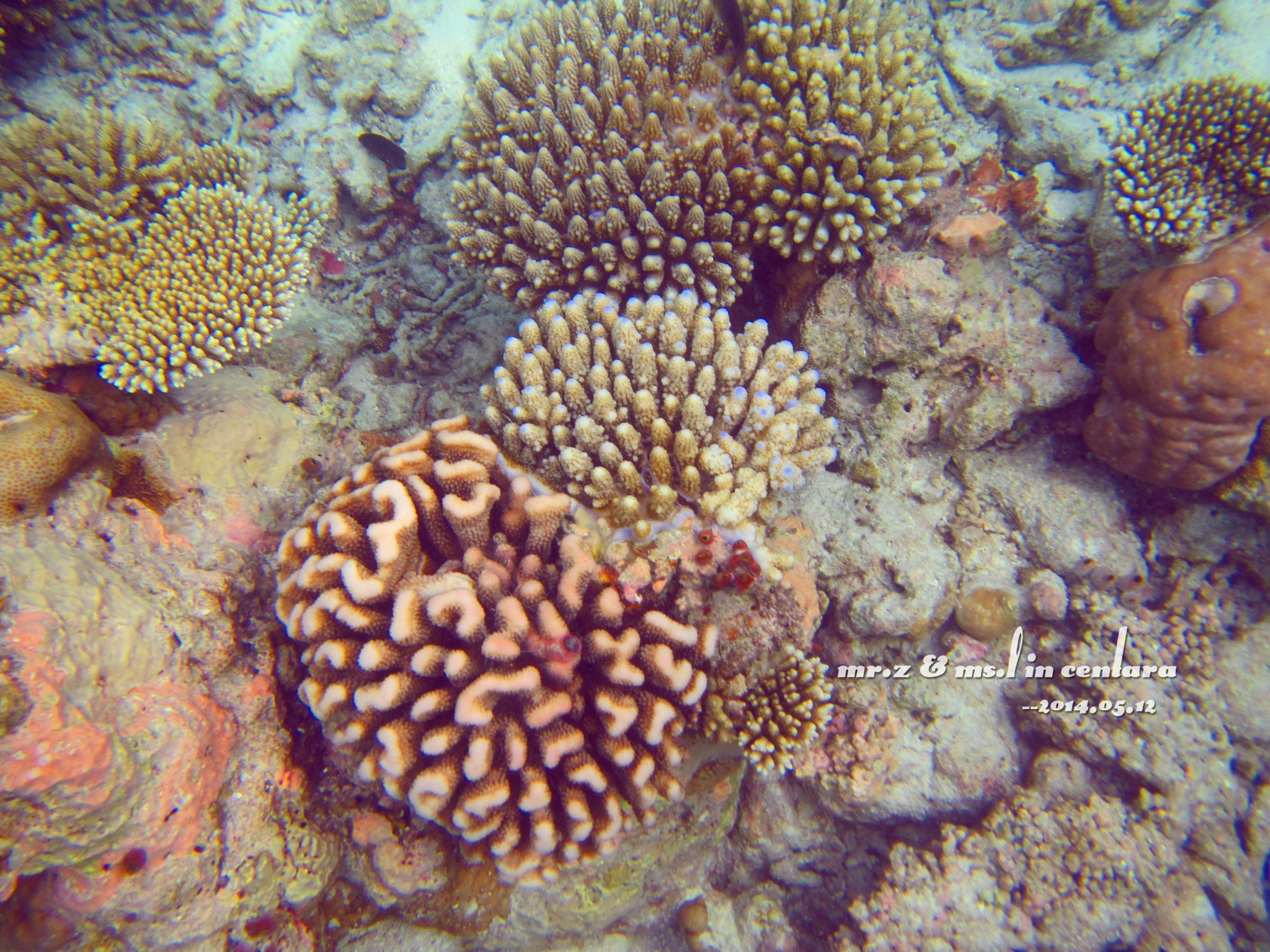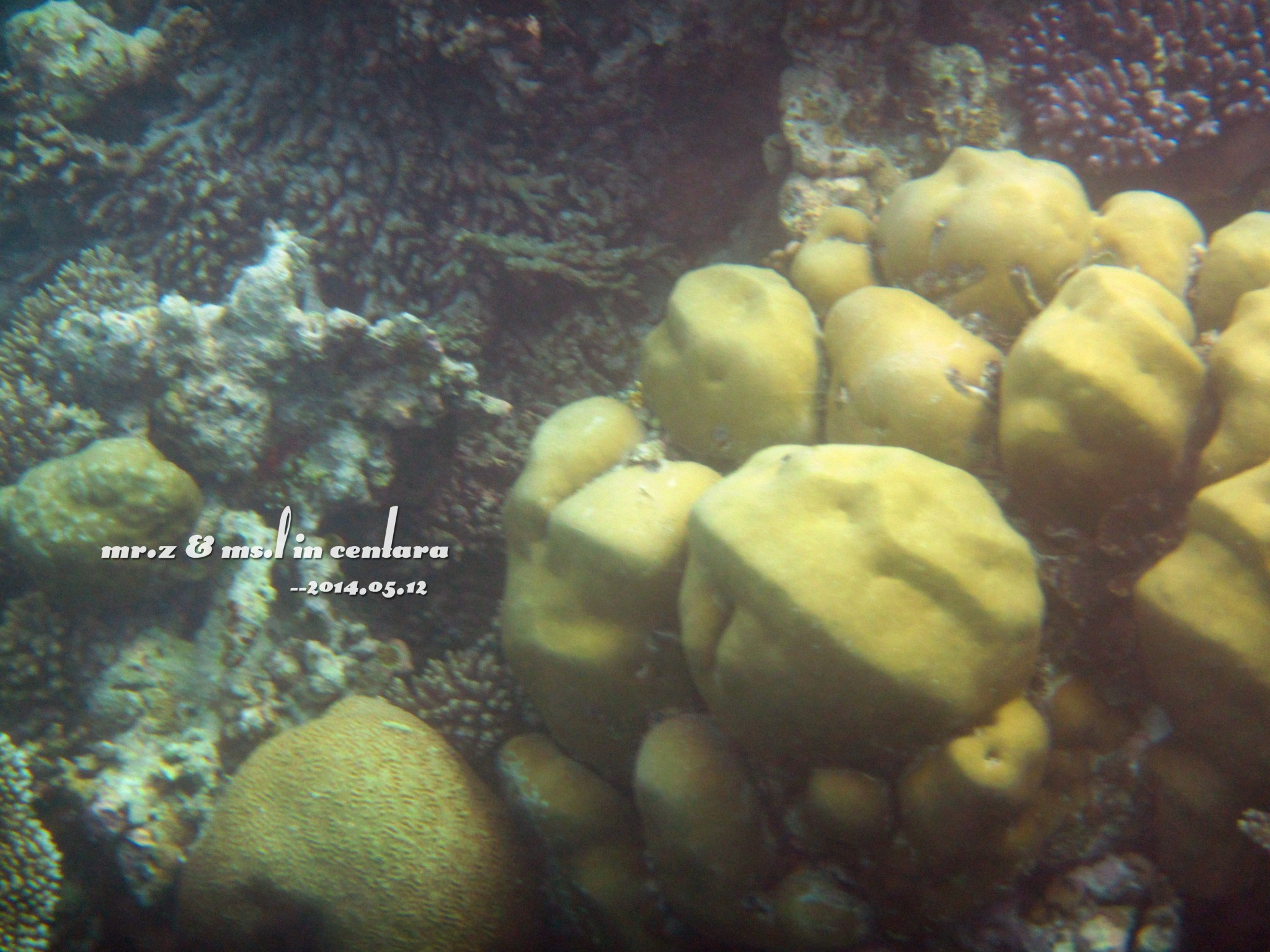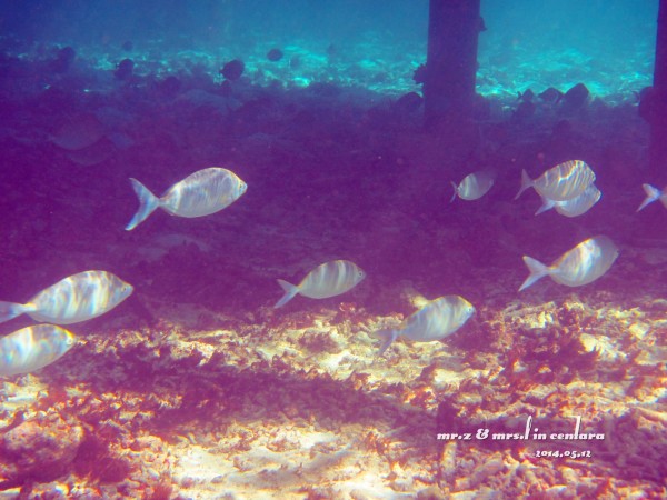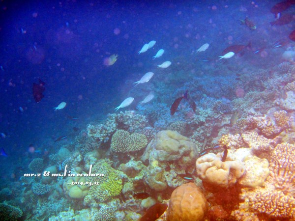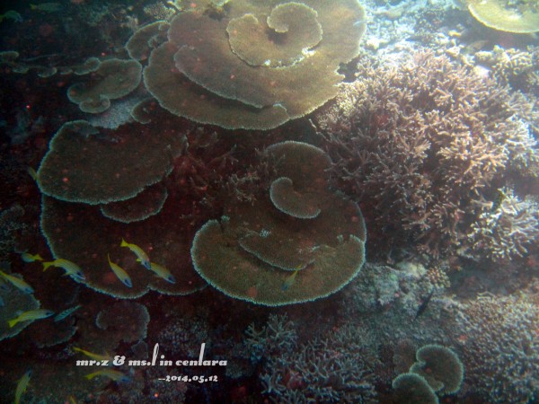 由于水上中心附近的海水比较浅,又是第一次用水下相机没有经验,所以这天的照片都拍得非常糊。。。(大家将就点看吧。。)