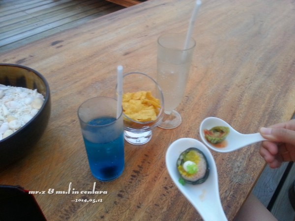 中央的招牌饮料 —— blue ocean,通透的跟这里的海一样,也是我在岛上点得最多的饮料