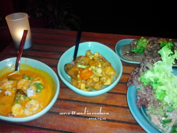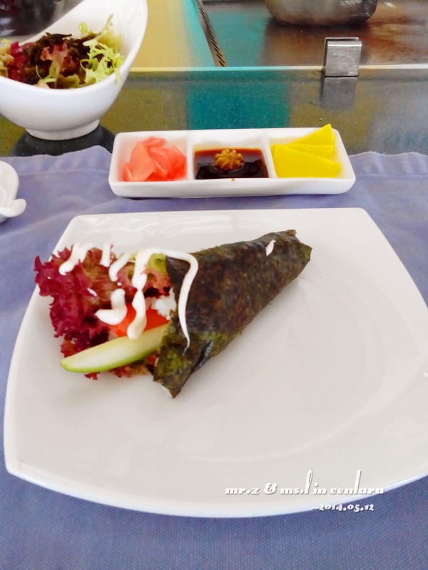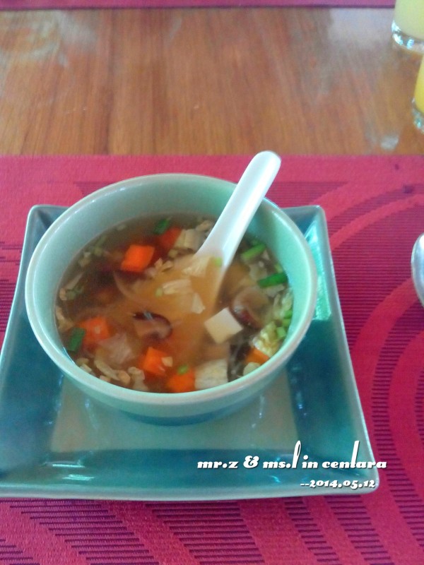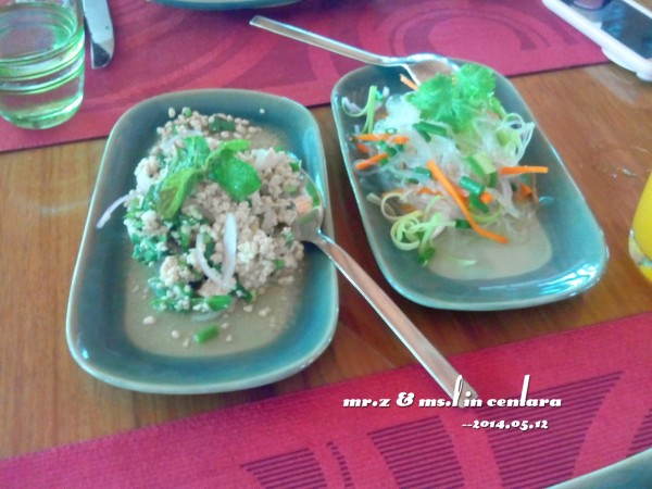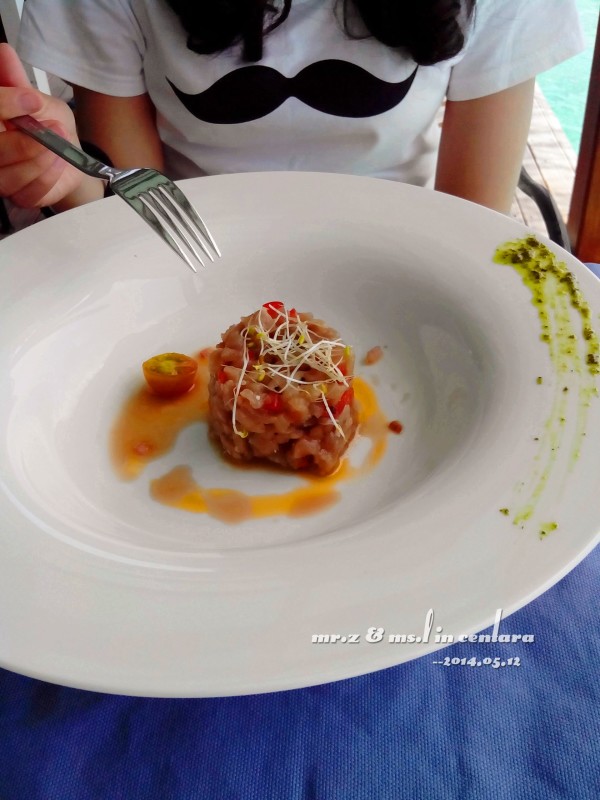 忘了带墨镜出门了,眼睛都睁不开了。。。 在泰国餐厅吃完午饭后,我们就匆匆回了水屋,因为傍晚预约了日落巡航的活动,所以我们打算在活动开始前的这段时间下水浮潜~
