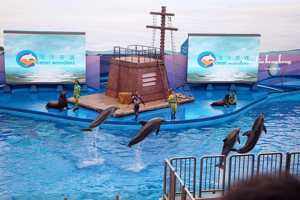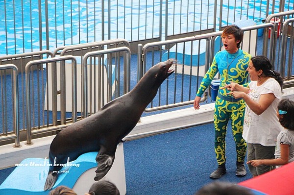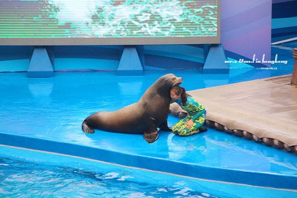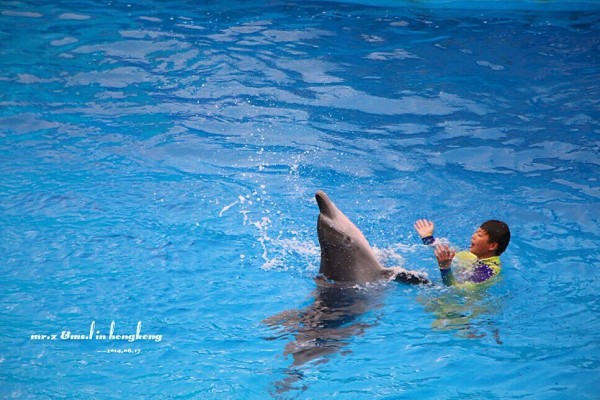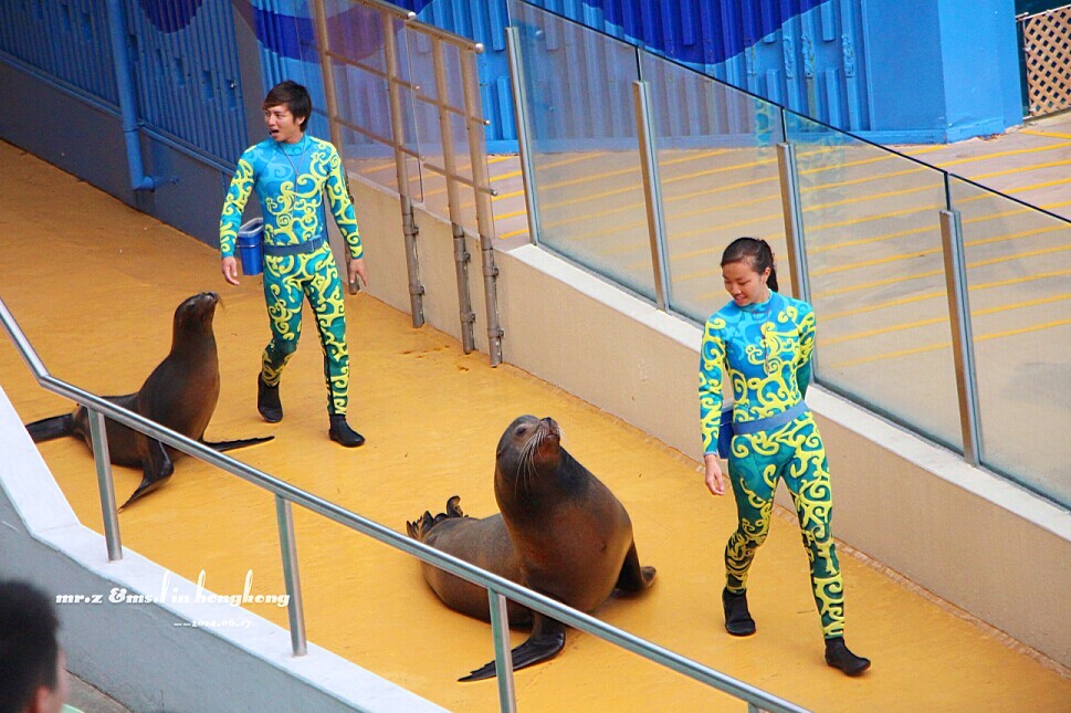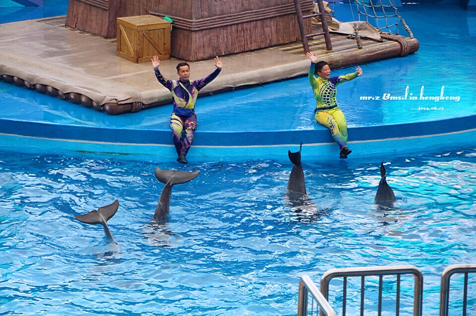 真实版 既然去了海洋公园,那海豚表演自然是不能错过啦。老婆说现在的表演跟以前她看过的对比起来,更人性化了,海洋公园也开始慢慢打造成以海洋环保为主线的主题公园了。