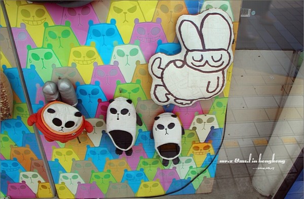精品店橱窗里的兔子和熊猫~