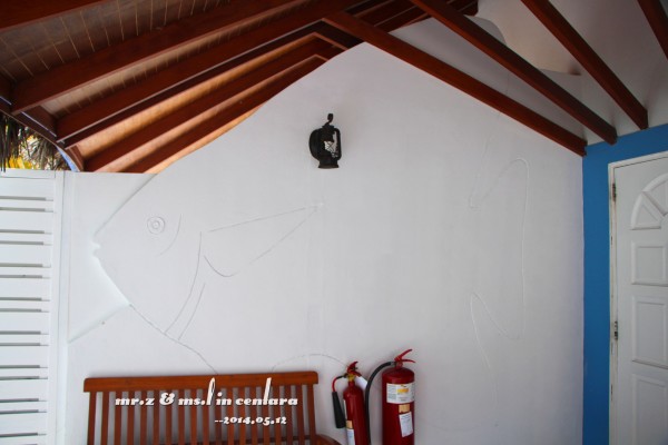 门口的墙上是一只鱼的图案