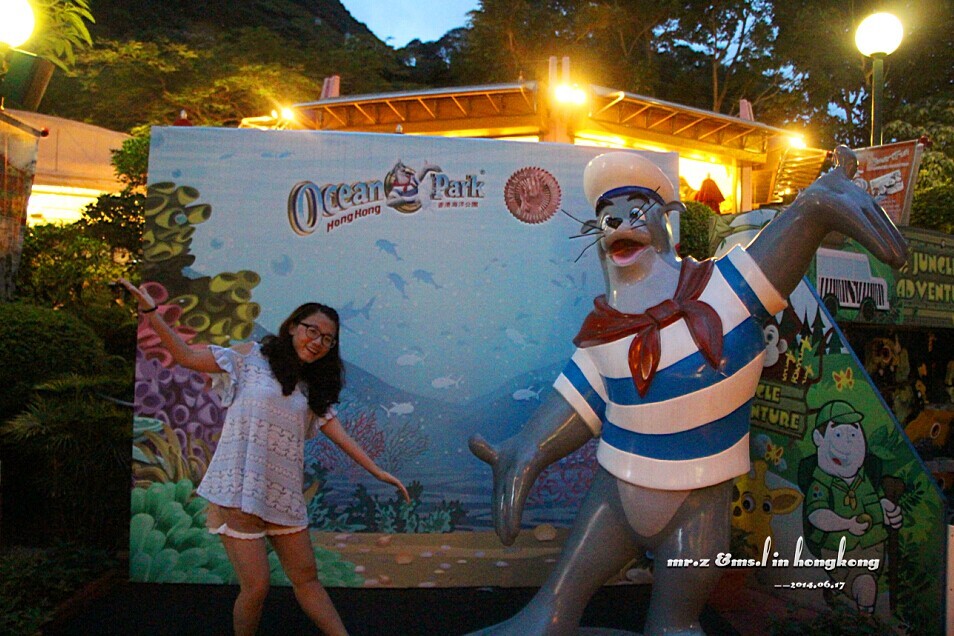回到尖沙咀后,我们又顺着来路压马路回去了。在路上貌似碰到了TVB剧组准备拍戏,只看到了工作人员在布置场景,没看到明星~ 貌似在香港大街上经常可以看到这样的场景的。 —— Day 3 今天一天的行程都安排给海洋公园了,海洋公园的门票我也是在网上订的,还有大巴送我们去,就在酒店旁边上车,非常方便。由于海洋公园的地铁貌似要到16年才会完工,所以目前去那边的方法只有搭公车和的士。。。