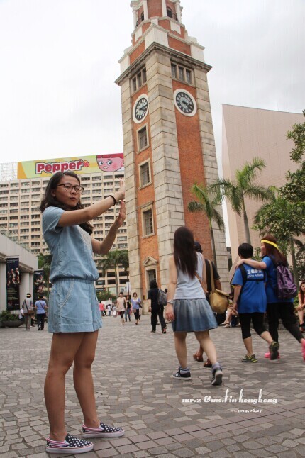 星光广场的钟楼 在星光大道晃悠完,我们直接穿过艺术中心,走去码头坐天星小轮过海去中环~ 中环轮渡的门口就有大巴能直接上太平山顶。
