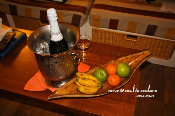 小黑送来的蜜月礼物~(我能说那瓶香槟很难喝么。。。= =!) tips: 1、在飞机快到马累的时候,空乘就会开始发放入境单和出境单,在飞机上先填好可以节省时间。入境的时候要交出入境单,出境单自己保管好,要出境时再交。