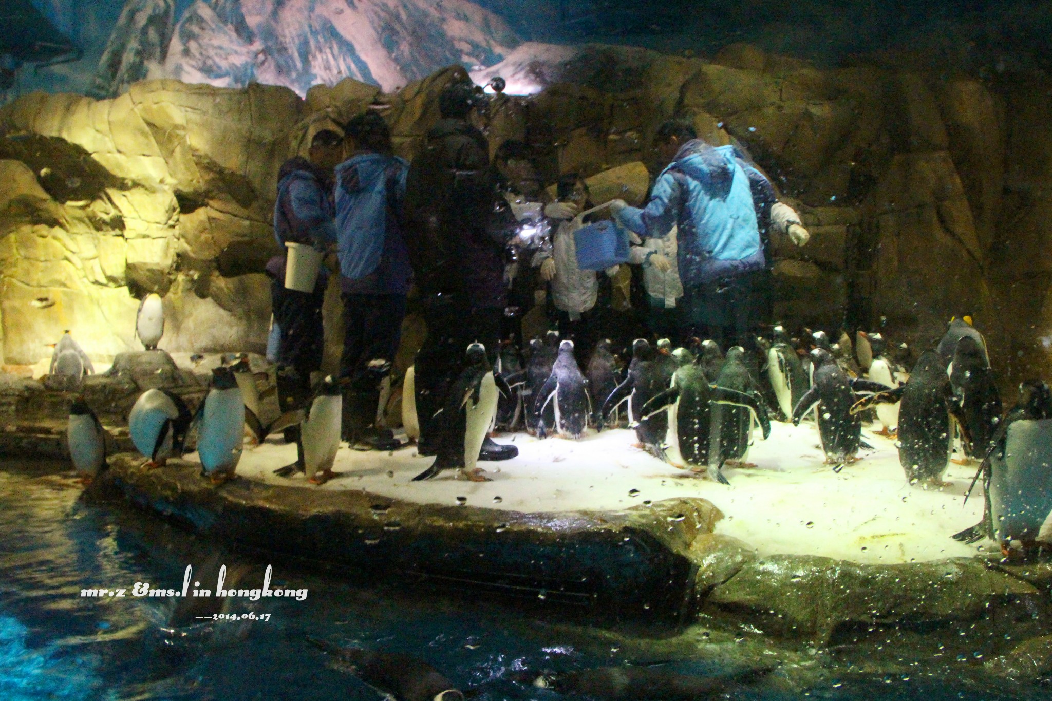 QQ们都在听饲养员训话。。(其实是看着他手里那桶鱼。。。)