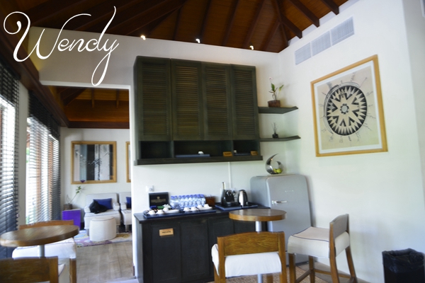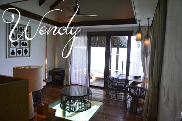 (3)WIFI。所有房间和餐厅、健身房等公共场所都有免费WIFI (4)救生衣。沙屋和水屋都有提供两件泡沫救生衣 (5)牙膏、牙刷、梳子、洗发液、护发素、沐浴露、润肤霜、润唇膏、浴盐、一次性剃须刀、棉签、棉球、吹风机、针线盒、体重秤、熨斗、熨衣板一应俱全。岛上的洗漱用品都是Molton Brown 6)保险柜。岛上每个房间都有保险柜,有内置充电器,可放置笔记本电脑。一般建议贵重物品不用的时候都放到保险箱哈。 (7)浮潜三宝。岛上活动中心有免费租借潜水面镜、呼吸管、脚蹼。但是岛上呼吸管不是全干式的,容易进水,面镜也偶尔会小漏水,而且不提供近视面镜。所以我建议面镜和呼吸管还是从国内带过去,不占地方,脚蹼则完全可以去岛上租。 (8)非动力船舶 岛上所有非动力的机动项目,一种是手划的船,一种是脚踏船。需要在水上活动中心登记,他们会告诉我们只能在附近的海域,这主要是为了确保安全,有任何状况的话岸边的服务人员可以及时发现。