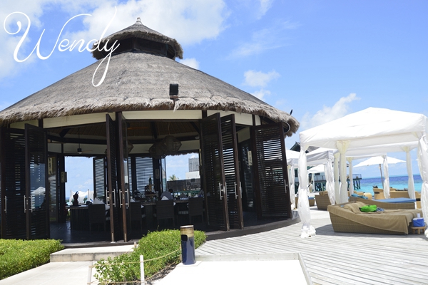 马尔代夫卓美亚JVJumeirah Vittaveli这栋圆圆的房子是酒吧,就在大泳池的一角,只要你在大泳池旁边休息,小黑都会主动过来问需不需要点饮料,送过来的冰水是免费的~