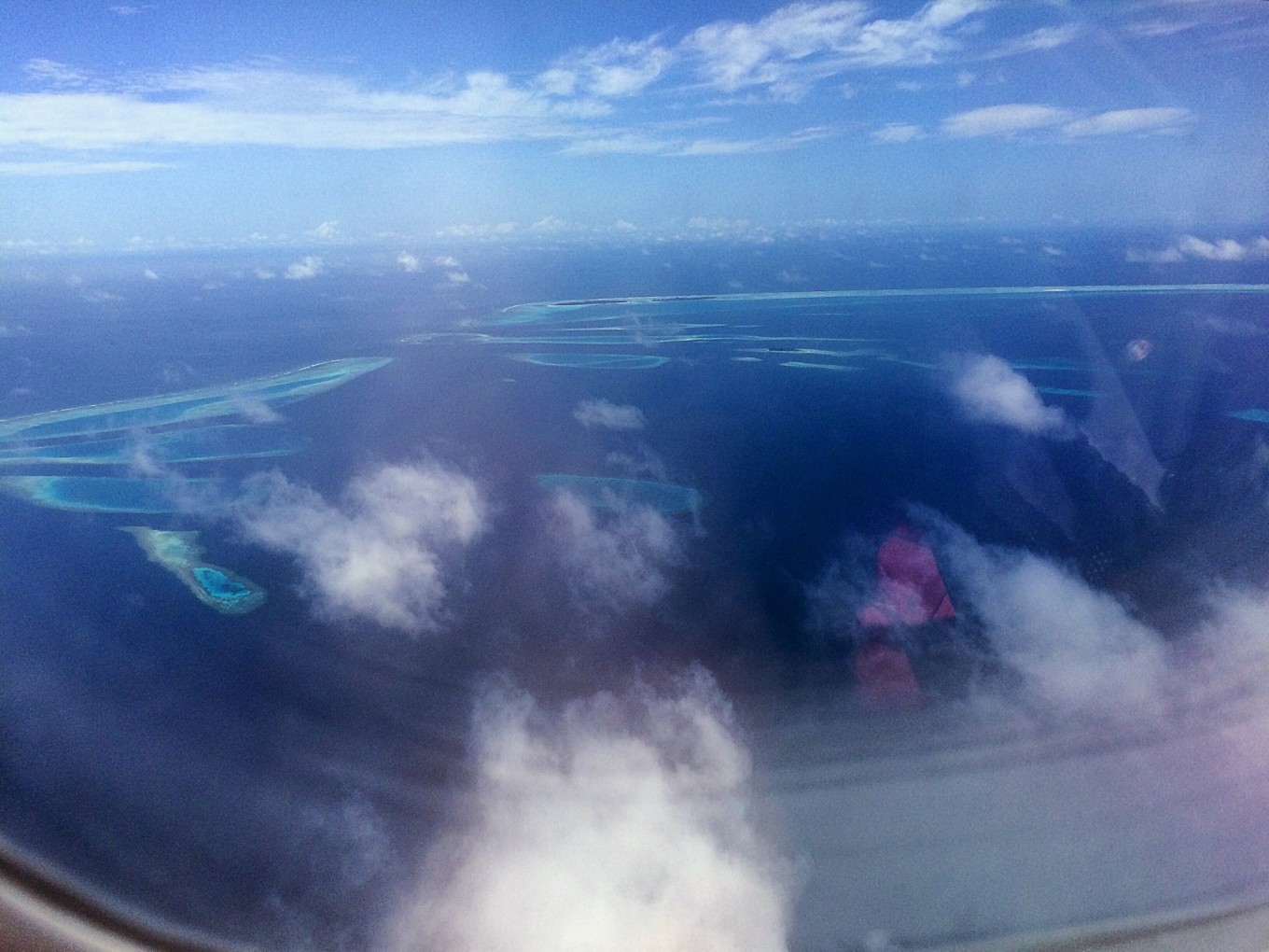 上岛的时候因为天气不是很好,没有看到太多的印度洋上面的珍珠,然后这次回去的时候,阳光明媚,万里晴空。 用什么来形容这么好的天气哇。 因为内飞只有20分钟多一点,想着睡觉也睡不好,我就一直在拍照了。某人,内飞上面睡成猪。