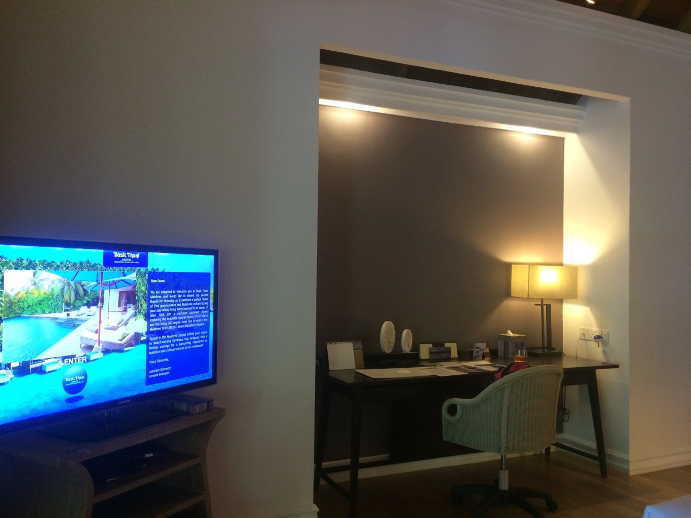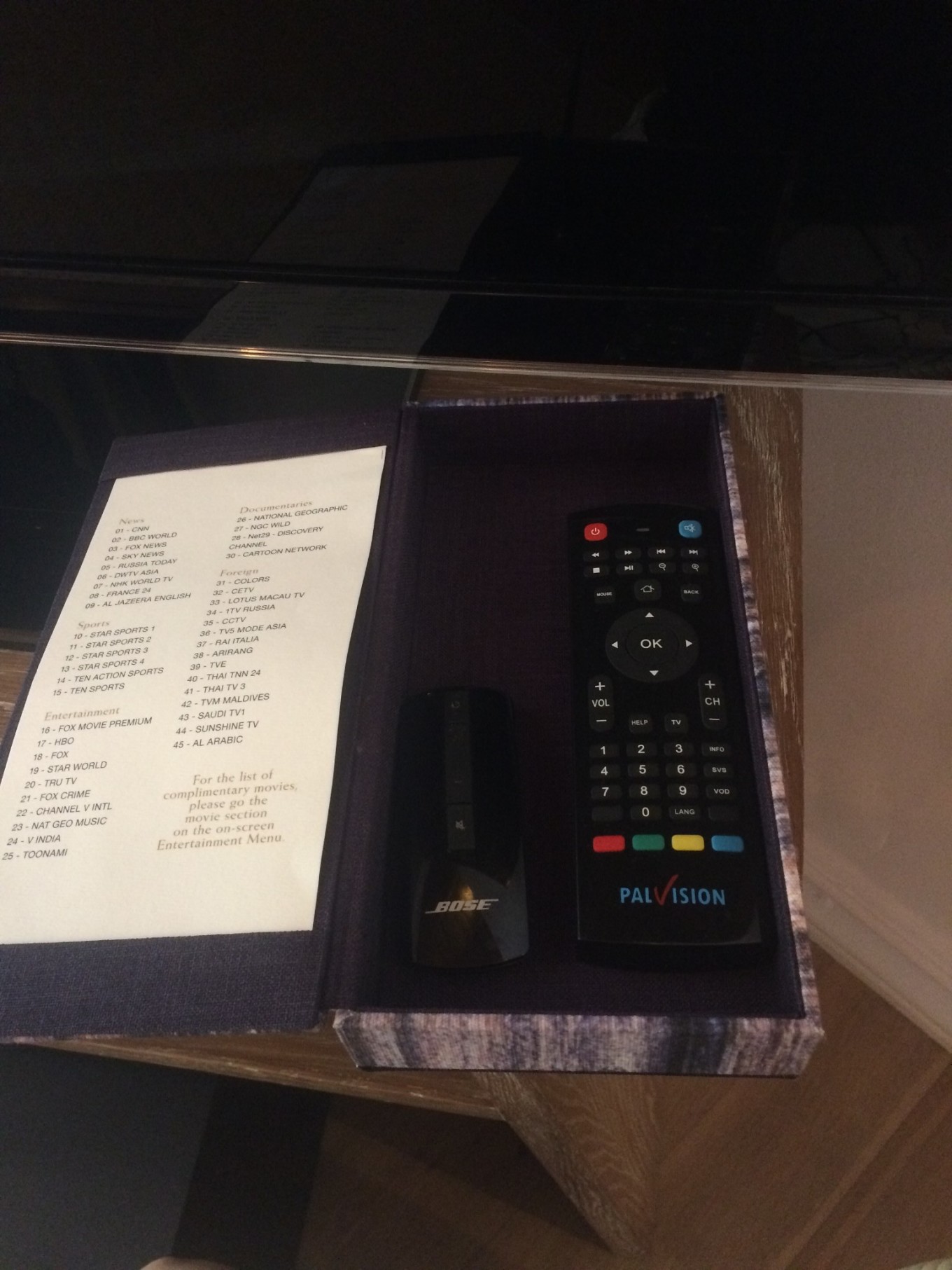 对对对。dusit 还有一个绝活,是后来看其他的房型的时候,经理交给我的。 就是房间都标配bose 音箱。 最最主要的是。不仅仅可以听他放的音乐,自己手机里面的音乐也可以放的哦。 管家一步一步的教我了,接下来我会教给大家的。
