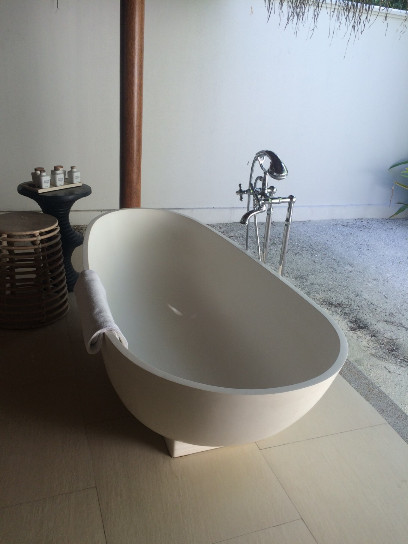 到了码头之后,管家和经理就直接领着我们走了, 对对,这里还有冰毛巾和喝的冷饮,我们表示匆匆忙忙喝了之后,就跟着管家的buggy,去了我们的房号。房号多少来着。我来问一下同事,表示过了差不多一个星期,已经忘记啦。 好的,我们商量出结果啦, 表示大家都忘记了。 那我待会上一张dusit的房号分布图给大家参考一下 我们住的beach villa 是 314号房,挺喜欢这个房间的。 为什么呢。 离我们吃饭的泰餐厅位置刚刚好哇。 泰餐厅的味道真的是蛮不错的啦。 还有二楼的酒吧的小食味道也是超级赞的。 下面是一些房间的分布图了。 进门是一个大卧室,右手边有一个们。推出去就是室外bath room。 dusit 一共有三个可以洗澡澡的地方,一个室外淋浴,一个室内淋浴,还有一个浴缸 。 对于洗漱用品这块呢:看到了梳子 ,牙膏,一次性的剃须刀,沐浴露洗发水护发素三件套基本上马代的度假村都是有的。也依旧有一个专业的电吹风。就是那种大到拿不动的。 dusit还有一个其他酒店没有的。那就是电子称。 哈哈。不过,哈P 。 今年比去年来重了 ,去年是43KG的。