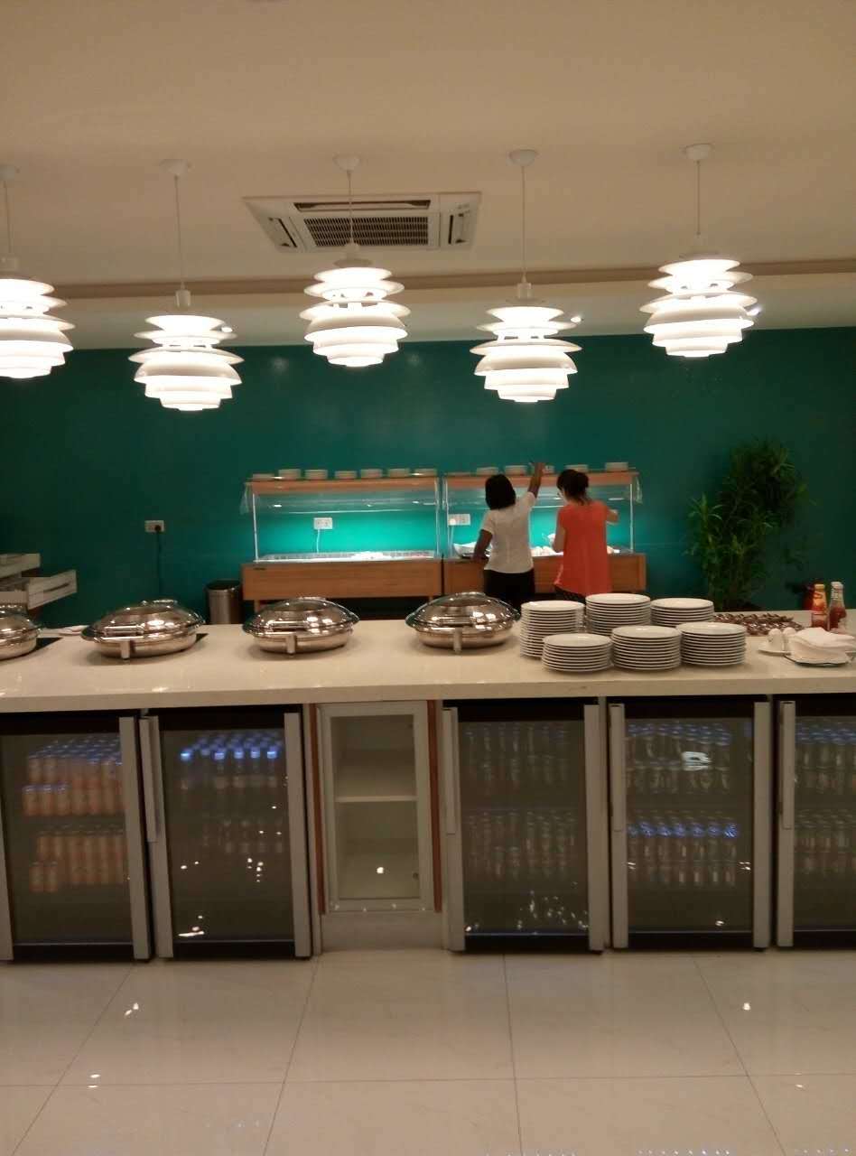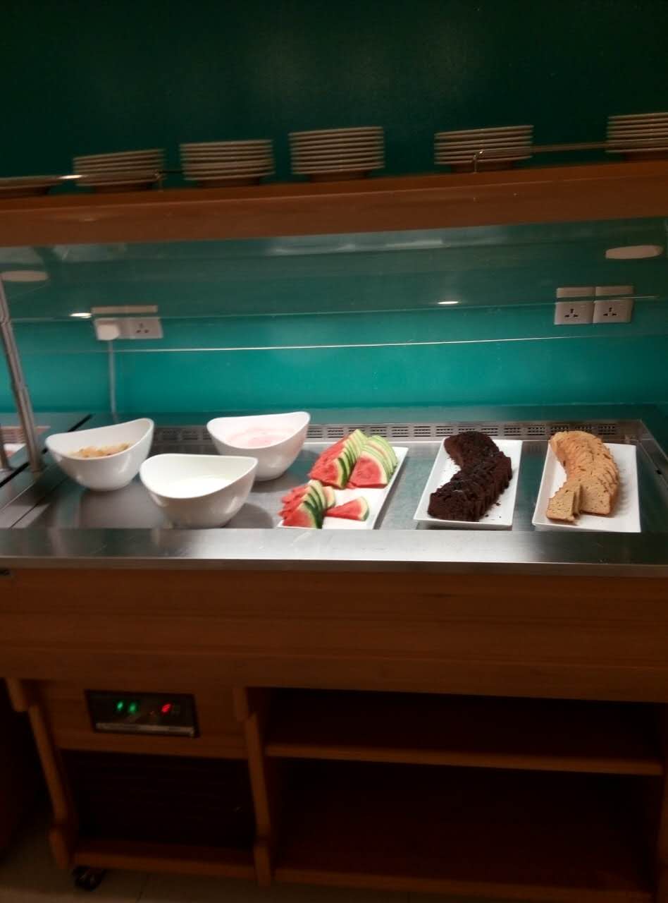一开始的内飞候机室是在一楼的,现在弄到二楼来了,新开的。我们来的时候给送来了问卷让我们帮忙评价 比之前的一楼大了。看着好多了,当然是好评好评啦。 内飞的行李托运好了之后, 然后就在内飞候机室开始等内飞啦。 这里有吃的,有喝的。比较喜欢吃这里面的意大利面。 也不知道是饿了还是,总之觉得味道不错。