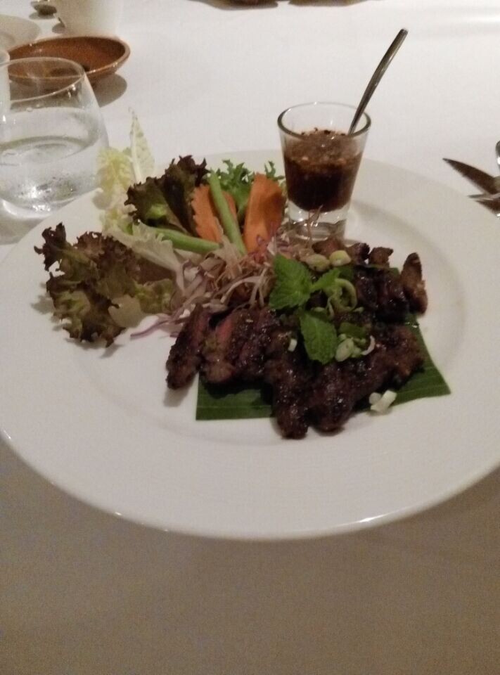 dusit 酒店的销售经理, 在泰餐厅上面的酒吧喝饮料吃小食的时候,跟我还可以开开心心的随便聊天,当然,有些时候就是安安静静的。 坐在二楼的酒吧,可以看到远处的灯光,他跟我们说,最左边的是 吉哈瓦酒店,中间的是四季兰达。最右边离我们最近的看的最清楚的是 阿米拉。 哈哈哈,长见识啦。