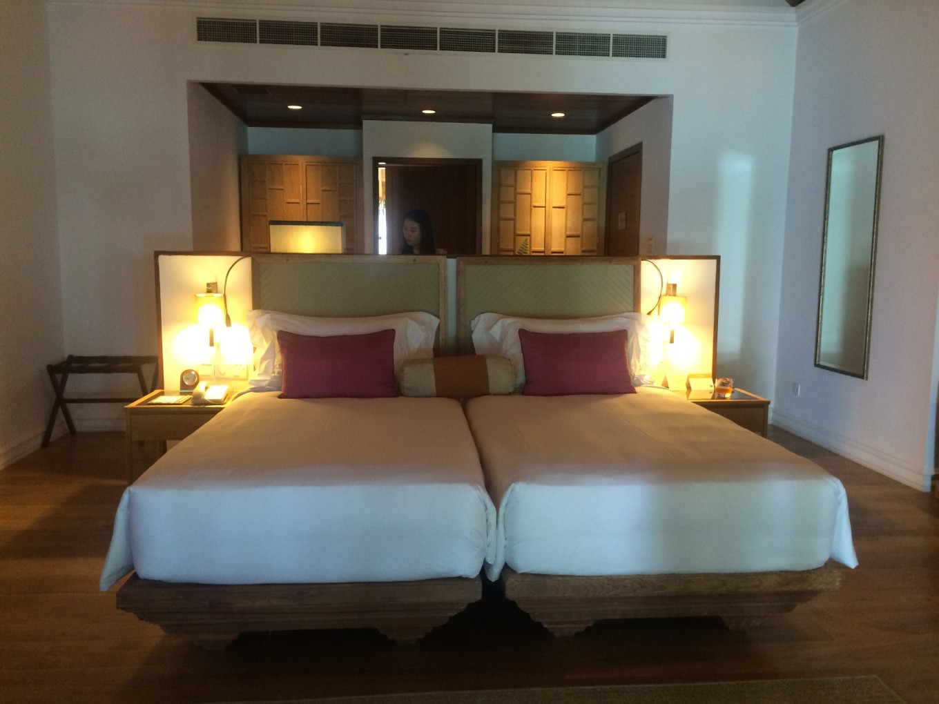 dusit thani的房间风格基本上是差不多的,房间布局,床啊这些, 沙屋来说,beach villa 和 beach villa with pool 的差别就是 beach villa with pool 是带泳池的了。 当然,dusit还有很多的套房。就是有两间卧室的,或者是三间的。适合家庭出游哇,还给小孩子都配了自行车,很贴心的酒店哇。