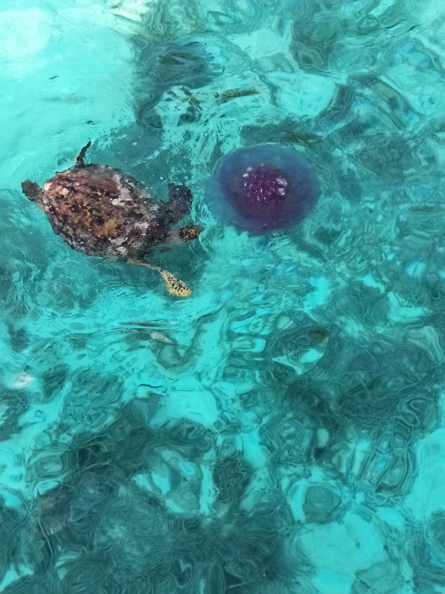 去水屋栈桥有可能会偶遇水母海龟哦!看一下我就遇到了哈哈运气超级好!