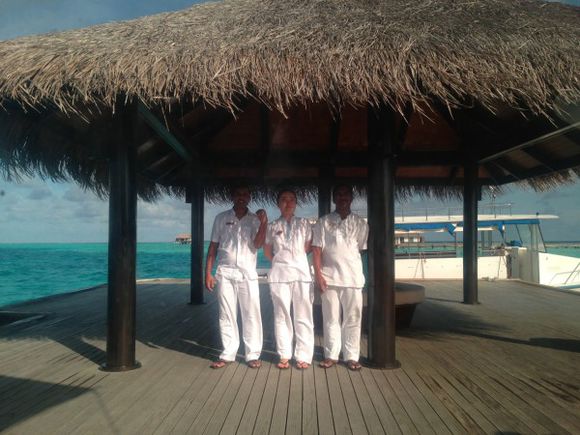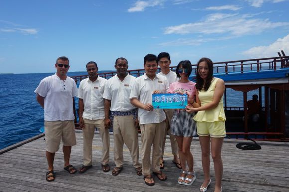 内飞到达中转岛,然后乘坐快艇。接着就能看到都喜的礁湖水了,哇塞,小伙伴惊呆了,我心中的圣地,美的没法形容了。迎接我们的小伙伴们热情的送来冷毛巾和汽水。很贴心的。