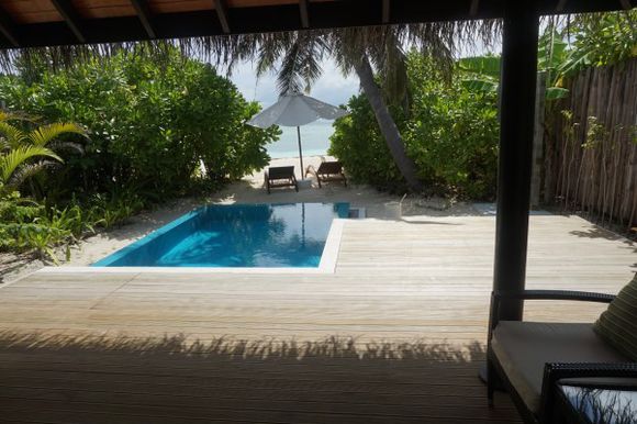 beach Villa和beach bungalow,区别就是位置的,beach Villa的沙滩比较大,浮潜也是很方便的,岛上有潜水点的,浮潜都是很方便的。
