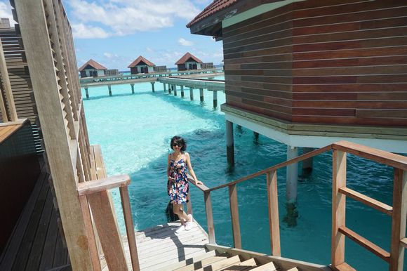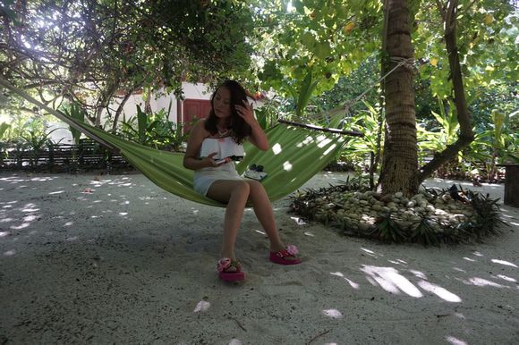 第一步,选岛,岛屿都是wendy搞定的,我负责告诉她我喜欢哪些岛屿,我说“wendy,我喜欢JD,宁静,JV,尼亚玛,芙花芬,吉哈瓦......你随便挑几个吧。"wendy直接甩过来一句,Jane,你的要求太高了,好吧,你安排,反正马尔代夫哪个岛屿都是美的,随便一拍都是一道风景的。wendy最钟情的是芙花芬,我也不知道为什么,难道因为林志颖在那边举行的婚礼吗,我自己揣测的。我想去吉哈瓦,因为吉哈瓦去了很多大明星啊,小猪(罗志祥),黄晓明,林心如......林心如去的时候,海岸线正好有两对客户在岛上的,感谢蜻蜓宝贝给我们直播的林心如的照片,草绿色的短裤,白色的短袖,很休闲,还有一对客户是和林心如一起出海的