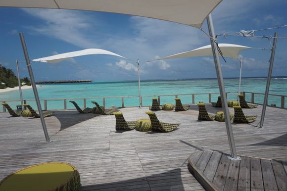废话不多说,接着描述维拉沙鲁岛上的基础设施。首先介绍的是维拉沙鲁的SPA馆,维拉沙鲁的SPA馆是建在水上的,是在水屋的另一边的, Chill Bar的对面。边做SPA,边看海景,真的是超美的。上图: