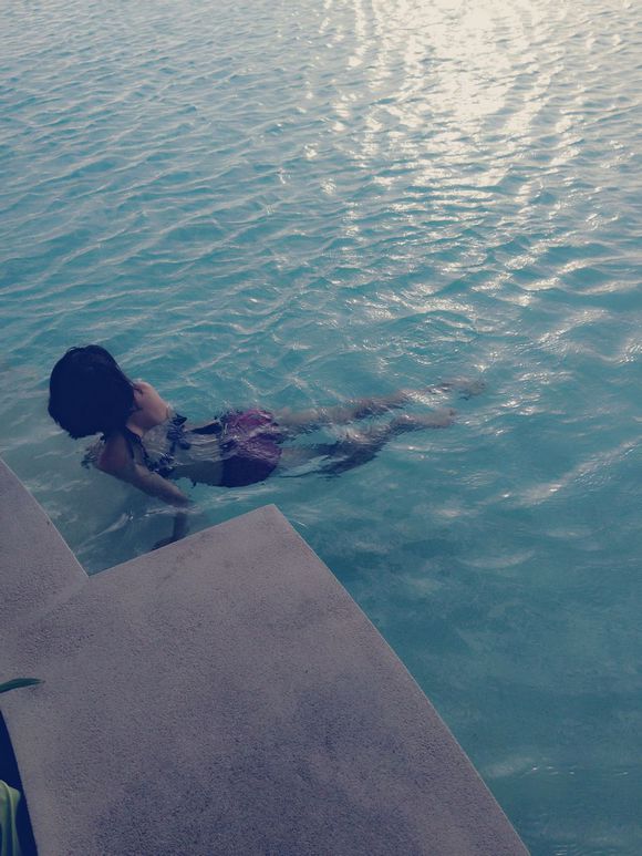 接待我们的是中国的一位帅哥,他带我们看了岛上的房间,给我们介绍了岛上的餐厅和酒吧,还有健身俱乐部......都喜天阙是泰国的管理集团,岛上的泰国餐厅很出名的,哈哈,我们的晚餐可以在任一个餐厅吃的,我们首选就是泰国餐厅了,都喜天阙有3个餐厅,一个主餐厅,一个西餐厅,还有一个泰国餐厅.....我见到了泳池旁边有个酒吧,因为在岛上只有一天,实在没有时间好好逛。都喜的无边泳池真的超大的,超美的,在豪水对面,我们去的时候豪水有一部分在装修的。我们的午餐是在无边泳池的西餐厅解决的,我点的是意大利披萨,wendy点的是通心粉,披萨超大份的,都没有吃完的,大概是26美金的样子。吃完饭就去无边泳池学游泳了,我的游泳教练就是wendy了,Yoko已经催我们穿比基尼了,群里面的小伙伴估计把Yoko逼疯了。上一张吃的和