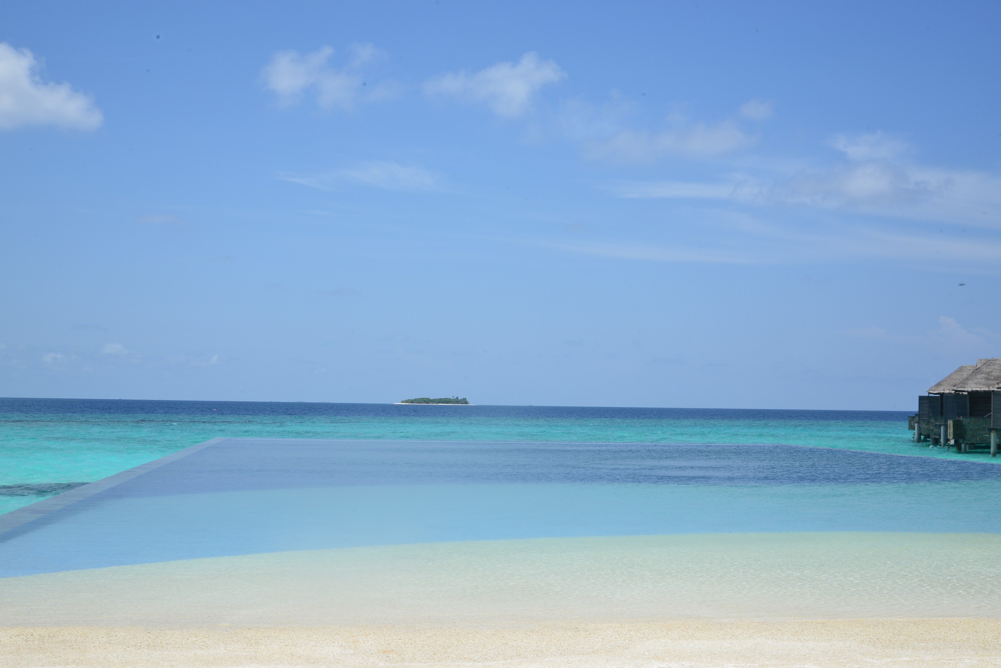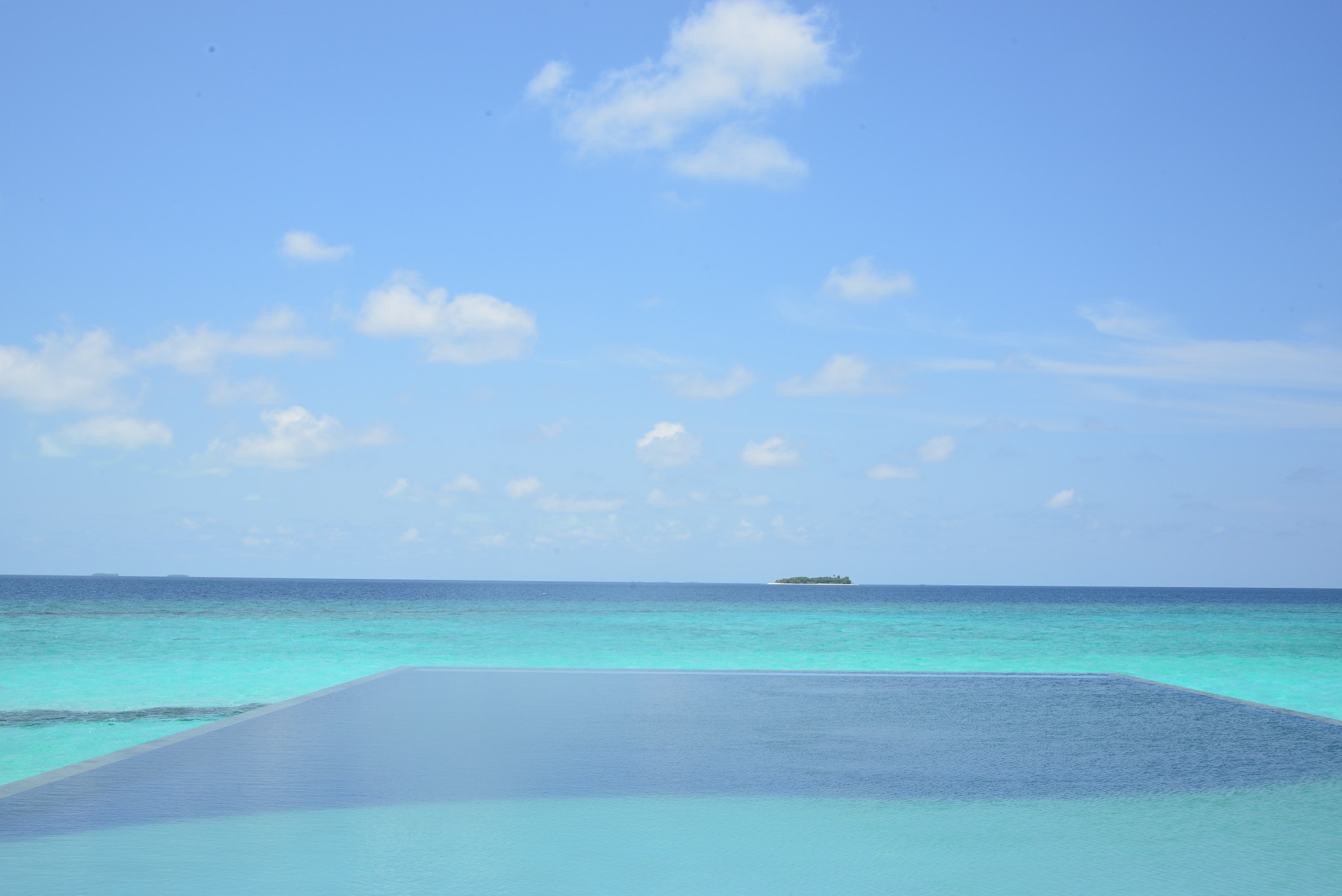 马尔代夫 JA玛娜法鲁岛上的无边游泳池~~后面是无边游泳池的酒吧~
