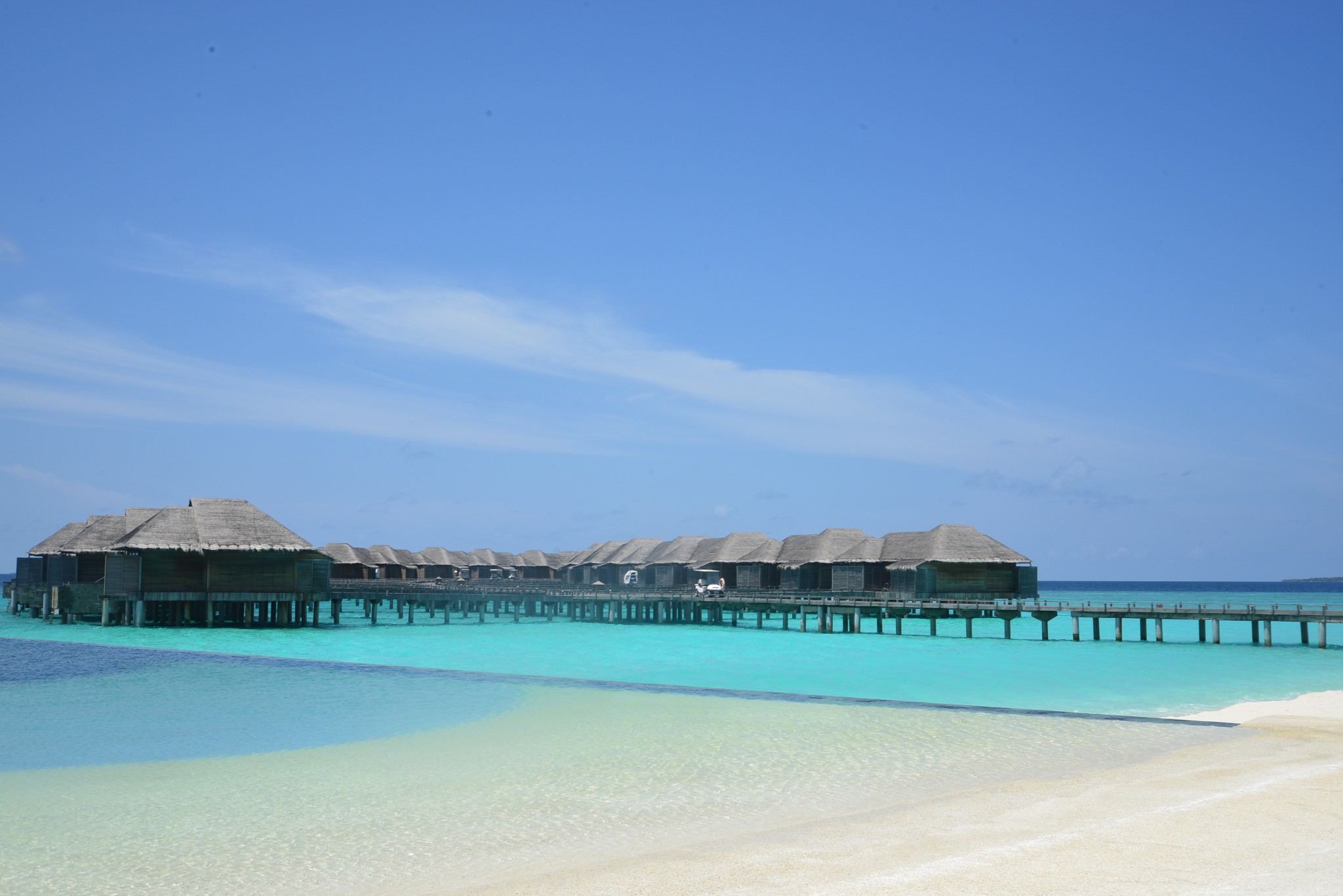 马尔代夫 JA玛娜法鲁栈桥的左侧~沙滩+沙屋别墅~都建在里面~