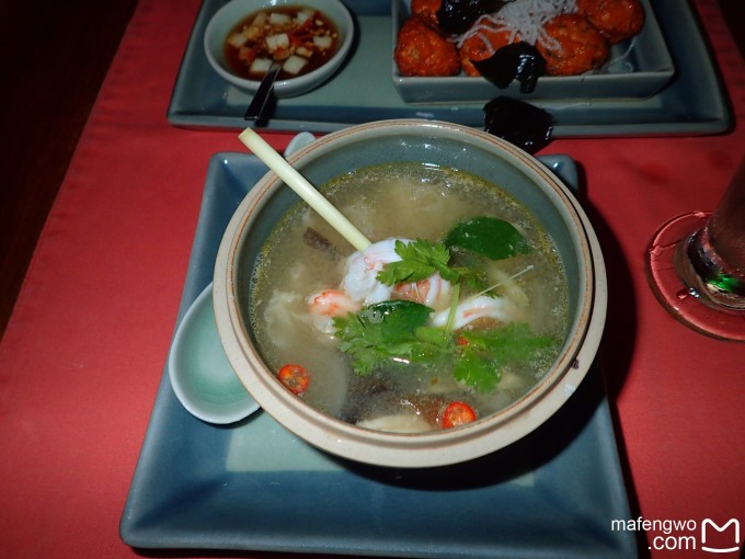 4.泰国餐厅 泰国餐厅里有莲花,装修什么的风格也是不错的。不过视野所及当然是不如在海边的意大利餐厅了。晚上灯光极其幽暗,真是“幽会”好场所。
