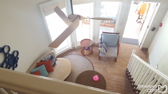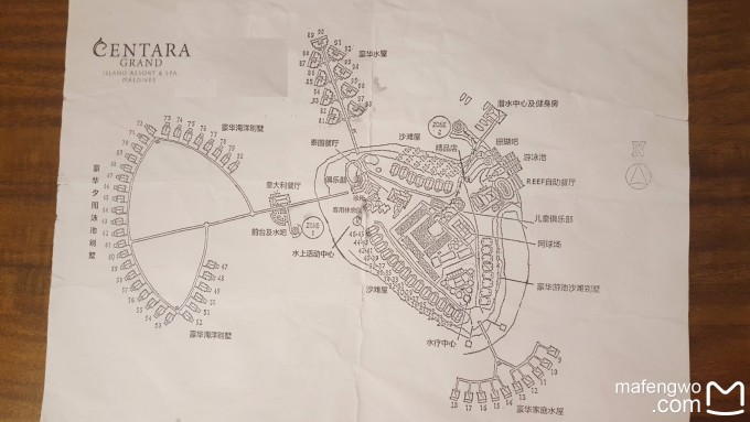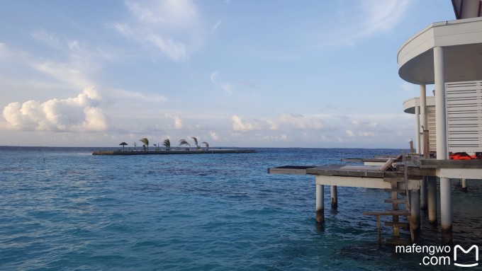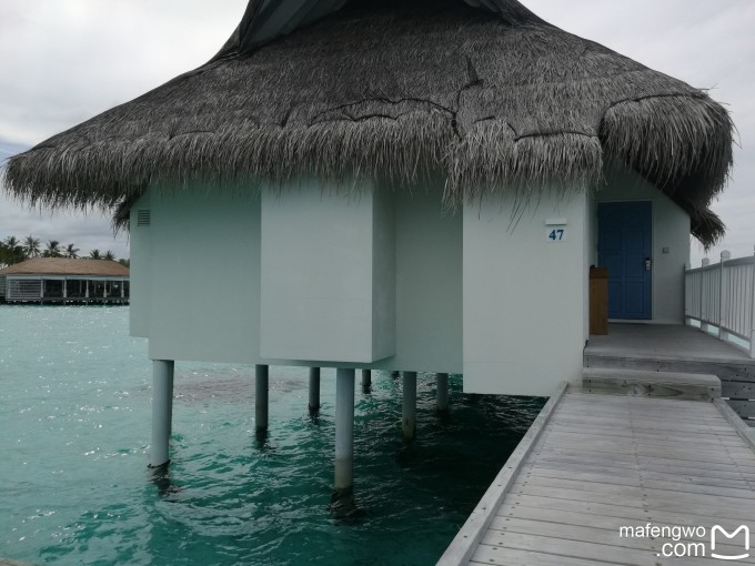 我们住的水房是47号,图上叫豪华海洋别墅Ocean Water Villa,在岛上的西南方向,比最便宜的水房,北面的豪华水屋贵一些。我上岛的时候这个房型就剩这一间房了,我觉得实在是多花了钱,真的是没啥必要。因为这个房间正好冲着水上中心,一到露台上对面看的清清楚楚,晚上更是他们看的见我我看不见他们。↓
