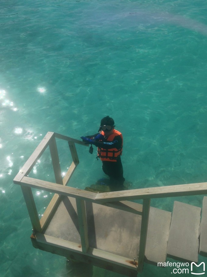 基本的必带物品代理都会给与建议和提醒。话说Tom给了一份物品清单超级详细。我就不多说了,我只说自己觉得有用的。 1.洗漱用品:去马代,牙膏牙刷一定要带。别的洗漱用品不带也都是有的。不过我都带了自己用的。因为定了水屋,里面有浴缸,我还带了泡泡浴,嘻嘻。觉得浴缸不干净的,可以带点消毒水。 2.防晒用品:我带了水宝宝、安耐晒和晒后修复芦荟胶。话说不管用什么,只要不是下雨,最好是在半个小时到一个小时就补一次。我们在岛上那几天每天都是蓝天白云,太阳大大的。我有天上午在岛上转悠拍照,大概一个半小时,阳光的威力立马就看出来了。用老公的话说,是“眼瞅着脸就晒黑了”。芦荟胶做晒后修复是一方面,我的手腕不小心划了一下,芦荟胶还拿来消炎了。 3.三脚架和拍照遥控器:对于想多拍美照的人来说,绝对是必备啊!多亏了这个,才有了我跟老公的若干张合影。比自拍杆好用多了,拿的自拍杆几乎没用。 看看三脚架的功劳吧↓
