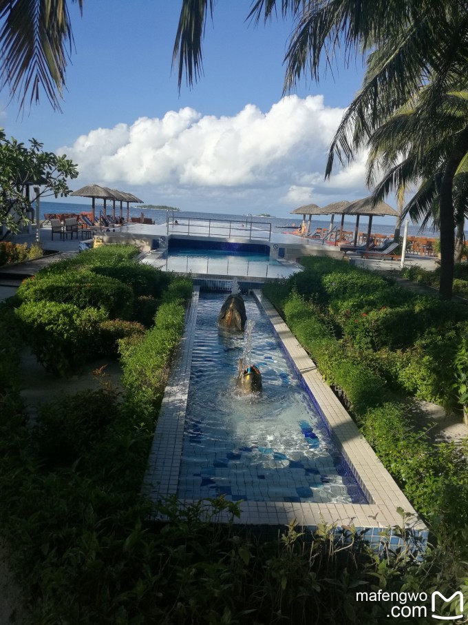 岛上还有健身房,我们没去。听说要穿运动鞋才能进。周一周三早晨有免费的日出瑜伽。 岛上有纪念品屋,买了件T恤,比马代机场的要便宜。 还有个儿童俱乐部,适合小小孩玩。话说中央格兰德真是适合小孩子,Reef餐厅还总有“孩子的角落”,小小的矮桌子,适合孩子自己取食物,准备的也是小孩子喜欢吃的薯条、面包之类。 岛上的无边泳池有不同水深的多个区域,小孩也能玩,水质特别好。不会游泳,去凹个造型拍个照也好呀~嘿嘿。见下图。 Club里面还有个泳池,没进,看上去不错。 国内换不到一美元不要紧,岛上前台可以换哦~~