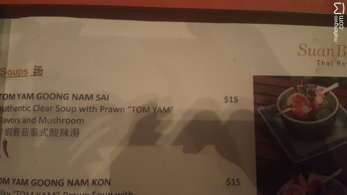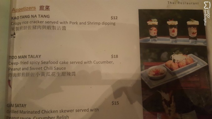 晚上泰国餐厅是菜单点餐的,我们点的前菜感觉多少有点东南亚的奇怪香料味道,但还是可以的。正餐我觉得点的都很好吃。 前菜点的是炸海鲜煎饼和下面那个汤。