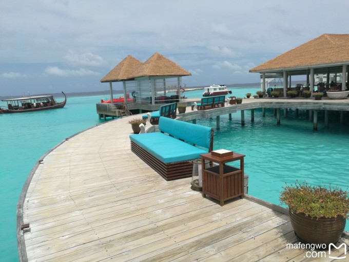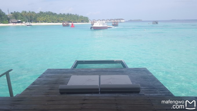 在岛上一共住四晚,跨了五天。我们是先两水后两沙的组合。据说spa不好定,我们先去预订了免费的spa,当天和第二天的spa全满,回程当天是不能做spa的,因此我们只订到了第三天和第四天的,也不错了。具体情况后面再说。 岛上有四个餐厅,Reef主餐厅(自助)、泰国餐厅、意大利餐厅和club里面的餐厅。普通套餐是可以任吃前面三个餐厅,club是对豪华夕阳日落水屋的人免费开放,我没定那个房间,就没进。主餐厅的自助不需要预约,且早饭只能在主餐厅吃。但是主餐厅的日式铁板烧、泰国餐厅和意大利餐厅需要预订,注意事项介绍时说每天十点后打电话预定,我建议,定完spa,或者定spa之前,直接在前台订就可以了。方便,还一步到位。我定完spa之后回到前台,发现当天和第二天的预定全满,我就定了第三天和第四天的四顿正餐,以及第五天要走的那天中午的正餐。注意:上岛当天的午餐可以不吃,然后选择在离岛的中午吃,没有多余费用。我们一共定了两次泰国餐厅和两次意大利餐厅,都是中午晚上各一次,还有一次日式铁板烧。充分体验。嘿嘿。当天中午也没饿着,上岛之后就可以享受岛上水吧、珊瑚吧和休息室的服务,珊瑚吧下午三点半就有点心吃了,三点入住就可以吃房间中小冰箱的巧克力,加上我们自己带了点小面包,一点问题都没有。 定完美食,直接在前台定了接下来的活动。岛上有五项活动是免费的。分别是鲸鲨探险、绿洲浮潜、日落巡航、夕阳垂钓和居民岛游玩。我们因为定的早,定到了前四项,都集中在第三天和第四天。这里就发现了先水屋后沙屋的好处,前两天之前的客人把预定都占了,只能订到后两天的活动,而我们因为前两天没有任何活动,可以充分体验水屋。不过活动最后也没有都去。老公去的鲸鲨探险是在第三天上午,我对坐四个小时的船没什么大兴趣,就留下来收拾东西做换房准备了,顺便还用三脚架自己拍了不少照片。结果老公回来说这次运气不好没找到,浮潜时间也比较短,因为那天风浪大,海水也浑浊。据说教练可以给拍照或者潜下去帮忙拍海底,可惜带的水下相机还出了bug,也没拍到什么东西,很可惜。另外他还怕不会游泳的我到了深海害怕,说还不如在水屋附近浮潜拍拍鱼。因此我们后面的绿洲浮潜和夕阳垂钓也没有去。我们只是一起去了夕阳巡航,巡航中船上的小黑还非常热情的给我们拍合影。那个小黑还在珊瑚吧主持晚上的活动,还有18点的喂鱼,戴眼镜,胖胖的,非常好认,非常热情。 还有个香蕉船,也是要提前预定的。这里要表扬那个给我们服务的中文GO,非常耐心的帮我们定了所有的活动,当然要小费感谢啦。还有,定的所有项目,一定要记清楚时间。我是提前做了个表格,然后把每一项spa、吃饭、活动都记录在表格中,包括预定号、时间和活动集合的地点,是否有重叠一目了然,然后手机拍照备份,之后全按表格行事,行程十分顺利。 定完行程,就可以去玩啦,虽然下水的装备都在行李里,可不妨碍我们带着随身物品在岛上转悠呀。三点入住之前的时间,我们就在岛上熟悉情况,在reef餐厅的堤坝外看到了小鲨鱼、blue Jack。还发现了个可以喝咖啡、冲凉、看书的客用休息间,坐了好长时间。不过当时没有进珊瑚吧,后来才发现,珊瑚吧里的休息区更舒服,一楼二楼还都可以打台球。 ↓客用休息区的咖啡,注意旁边的书,嘿嘿↓