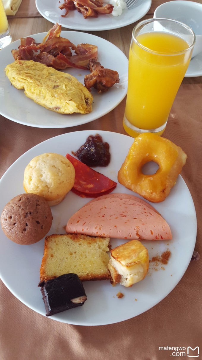 终于写到美食了!作为一价全包的岛屿,应该说多样的美食是一个卖点,总体来说我们觉得还是很不错的。 1.Reef主餐厅:主要有一些面包、蛋糕、牛奶、水果、沙拉和其他炒饭之类的。每天的早餐有些相同,循环往复,比如我发现炒饭、炒面就是隔天出现的。有些菜品是三天出现一次。 下图那个椭圆的金黄的蛋卷很好吃,蛋液煎成饼,里面包了很多蔬菜。香肠味道也不错。最喜欢的是鸡翅,基本上来就很快没有了的节奏。 Reef餐厅蛋糕很好吃,感觉中午晚上的更好。早晨的炒饭炒面都不错,炒饭更好吃。早上可以要热水自己泡茶,茶包都在桌子上自助。还可以要热牛奶。或者自己去倒凉的饮料。下图中那个喝了就剩一少半的好像叫泰国茶什么的,奶茶的味道,也不错。不过我最喜欢的饮料是菠萝汁,其次是芒果汁。