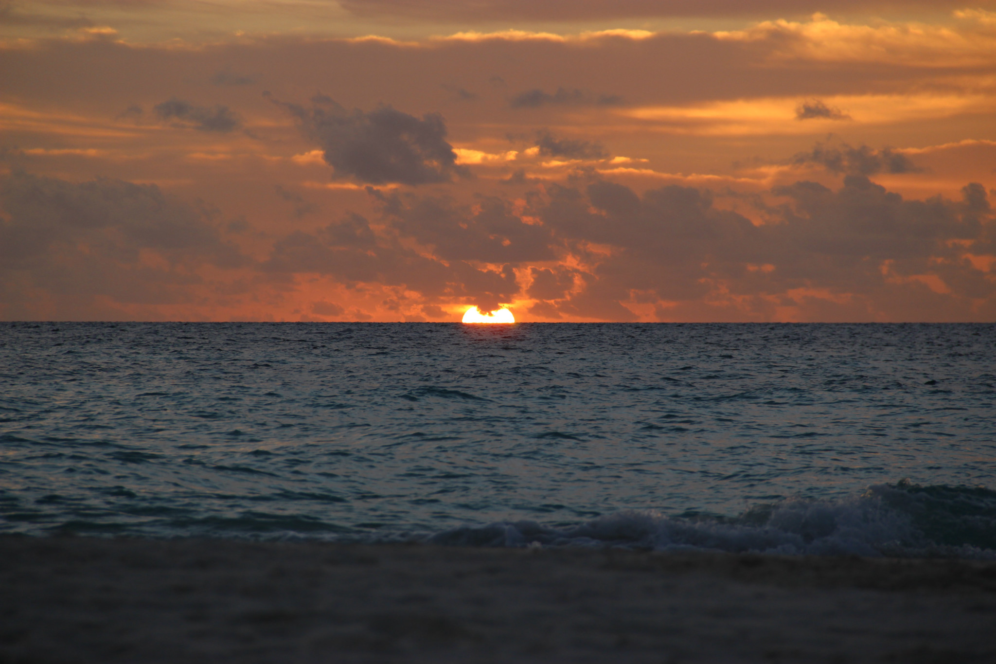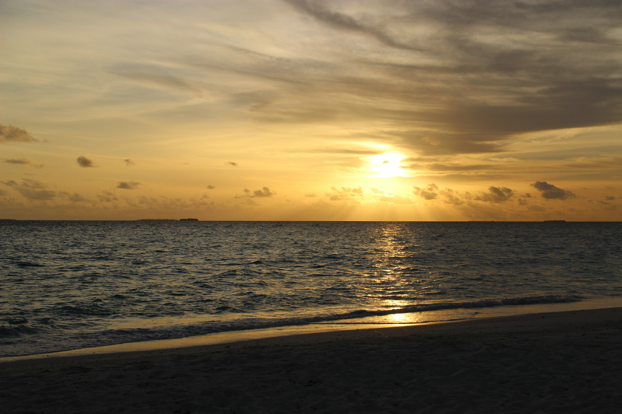 马尔代夫在热带地区,一年四季的气温和天气都没有很大的变化,但是区分了干季和雨季,每年的10月—次年5月是干季,也是旅游旺季,价格也比较贵一点。5月—10月是雨季,也属于淡季,价格会比较优惠,出行的人相对也比较少。不过不用担心雨季出行会下雨,马代即使下雨也是阵雨,最多五分钟就会停,最大的影响就是有时候云层会比较厚,天空没有那么透明的蓝。但是国人都爱趁着暑假和淡季出行,所以我们这次来的时候碰上的国人并不少。7、8月又是雨季中雨多的时候,我们在岛上的几天有时候也会碰到云层较厚,不是天天都能看到日出。