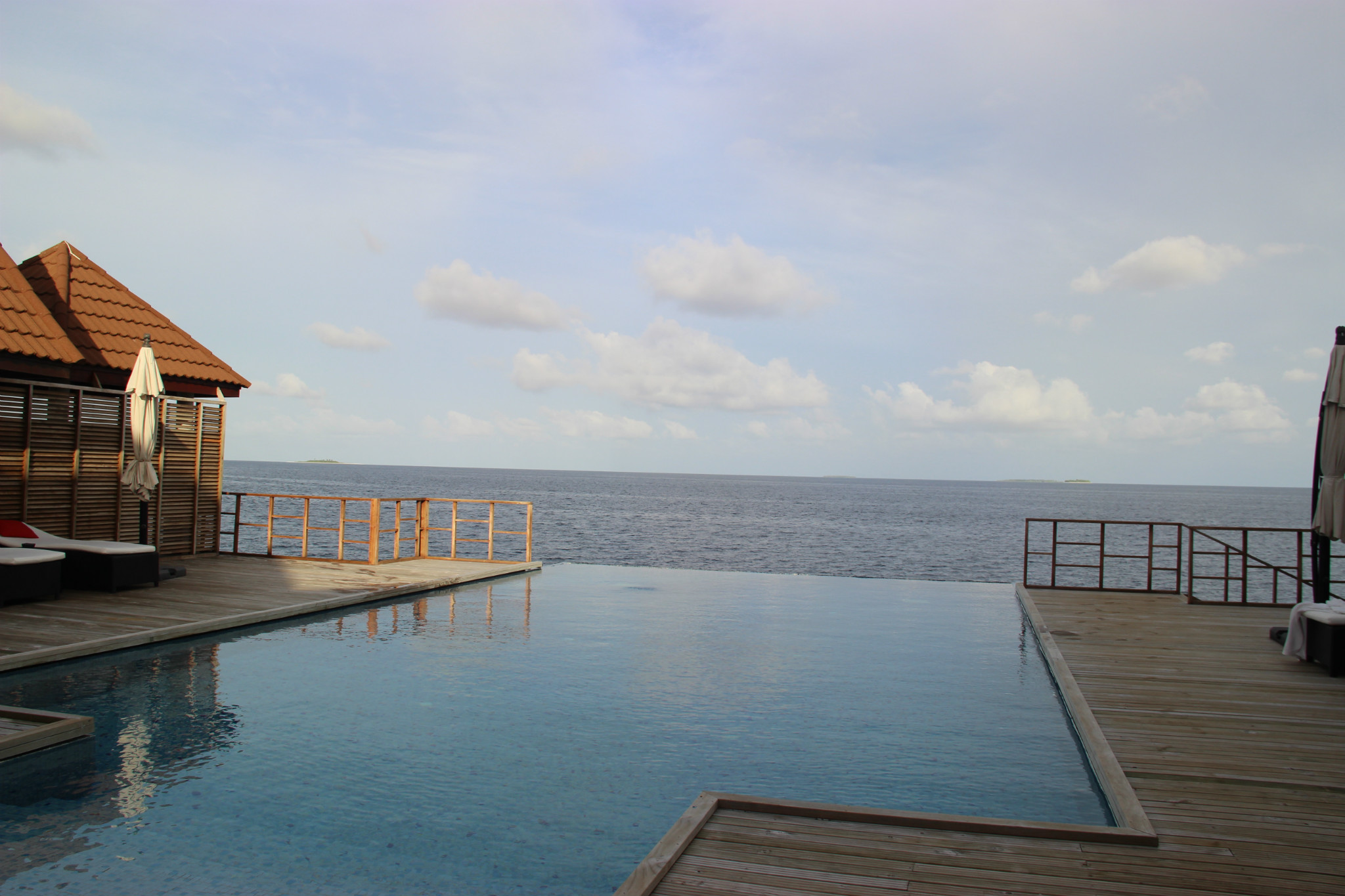 我们把行李放好,稍作休息后,就接到了本来就在岛上的YY的微信。YY是老公的发小,这次也是趁着暑假期间跟老公提前蜜月,听说我们要来马代后,于是也找了Wendy帮忙订好了R岛的房间,本也想与我们一同出行,但那段时间R岛房间特别紧张,他们只能提前几天,不过还好我们在岛上还能相聚。原来,他们和一同上岛的另外一对夫妻已经免费升级了总统套房!真真是太爽了,知道我们上岛了,就邀请我们过去参观。YY特好,一直在提醒我们在岛上要注意的事项,由于明天他们就要离岛了,所以让我们一直在总统套房中玩耍、游泳、拍照。R岛只有一个总统套,这里是观日落的最佳位置,还有无边泳池,这的楼梯是直接与深海相连,从这下海浮潜也是很好的选择。