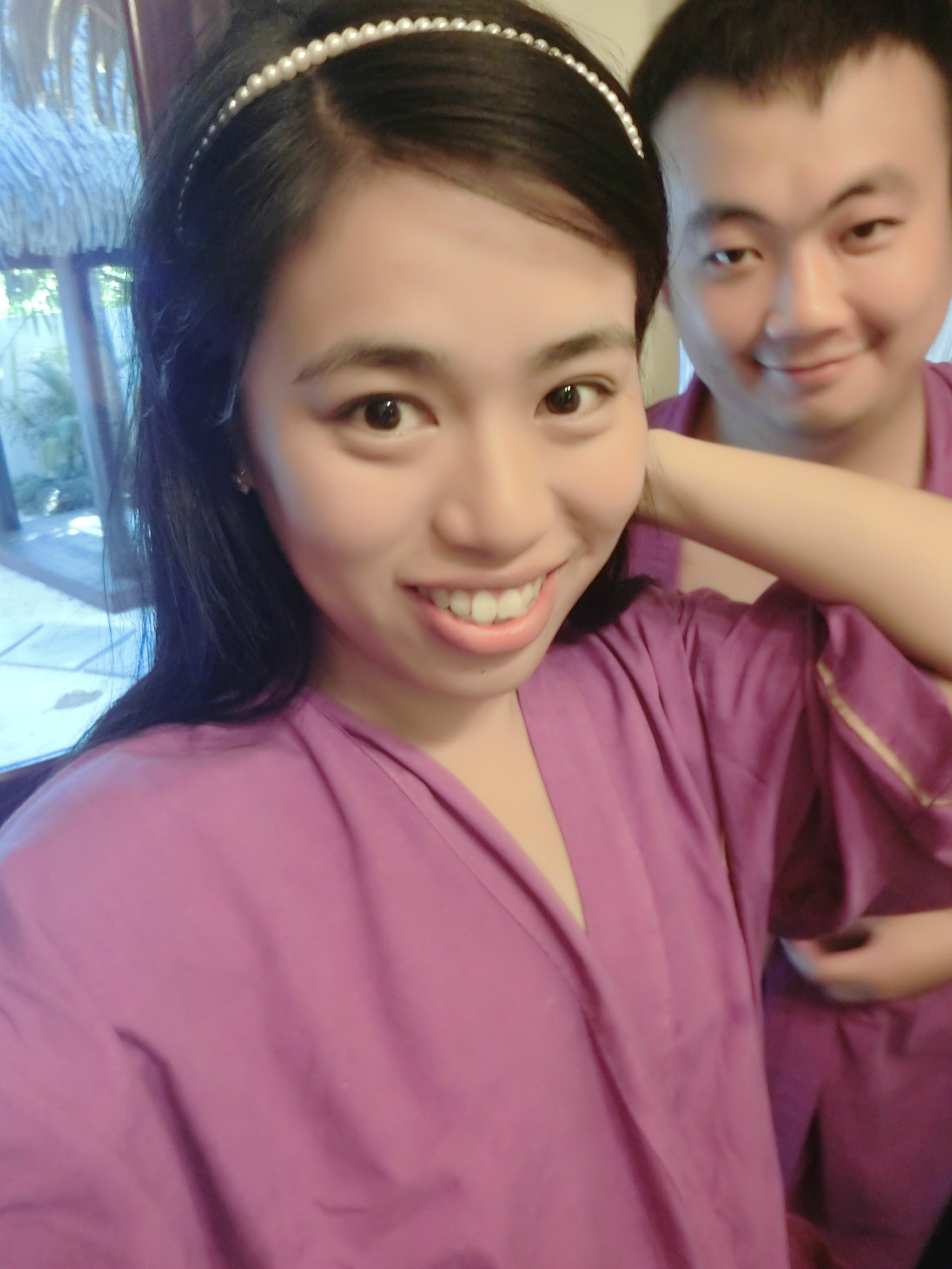 下午五点半的时候起来送YY他们。岛上的工作人员说,每天都有新的客人兴奋上岛而来,每天也有客人舍不得而离开…… 接着,我们就去SPA馆预约。SPA馆的环境真好,是自费项目之一,里面几位按摩师都是来自巴厘岛。上岛的时候工作人员会给一张蜜月体验券,拿着这张券去SPA馆可体验20分钟的免费服务或者预定任一套餐享受九折优惠。来了就要享受一下,这边的套餐很多,可以自己选择,我们最后预定的是包括面部按摩的MASSAGE套餐,时间定在8.1下午3:30—5:30,打九折,但要加上8%的服务费,再加上10%的税,总之算下来两人一共是252.3美元。既然来了,我们就要好好享受一下。 另外,那对90后的小夫妻是提前蜜月,他们在网上订了婚纱照,是一个团队正好在这个时间来到了R岛,于是他们就在那边拍了婚纱照,实在太美了!在R岛上还有一个婚纱工作室,是两位德国摄影师开的。不过国外的摄影师更加讲求自然元素,化妆和后期制作方面并不追求。大家可以视自己的爱好来订。这对小夫妻订的价格好像是14888RMB,其他我倒不是很清楚。德国人的工作室价格有高有底,还要根据是否租借婚纱来订。