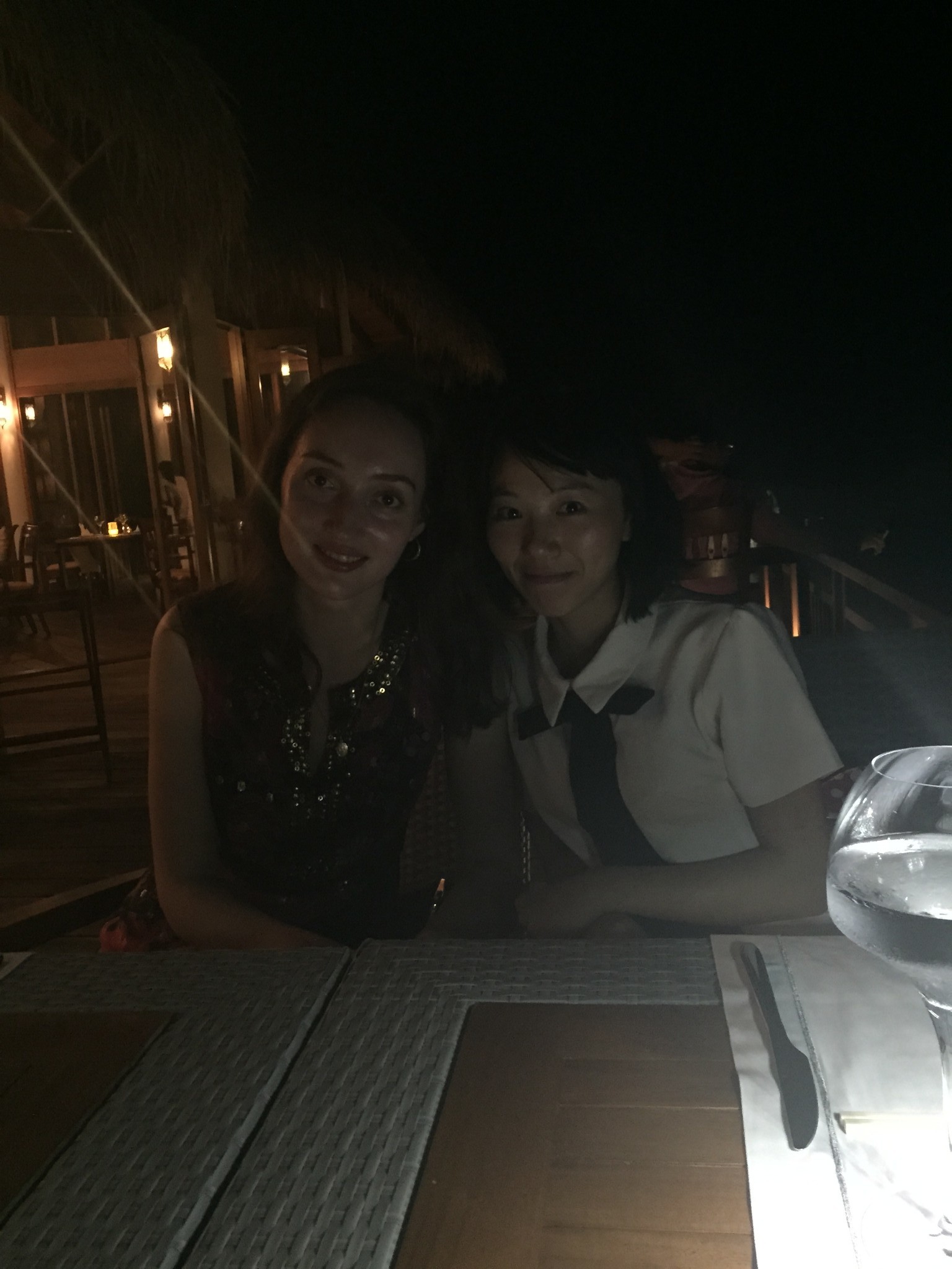 神仙珊瑚岛酒店的经理陪我们用晚餐,她好幽默啊跟我们讲故事,之前他浮潜看到鲸莎,吓坏了~和我们什么都聊,还愿意和我们分享他的食物~我觉得俄罗斯的美女真的不错欧