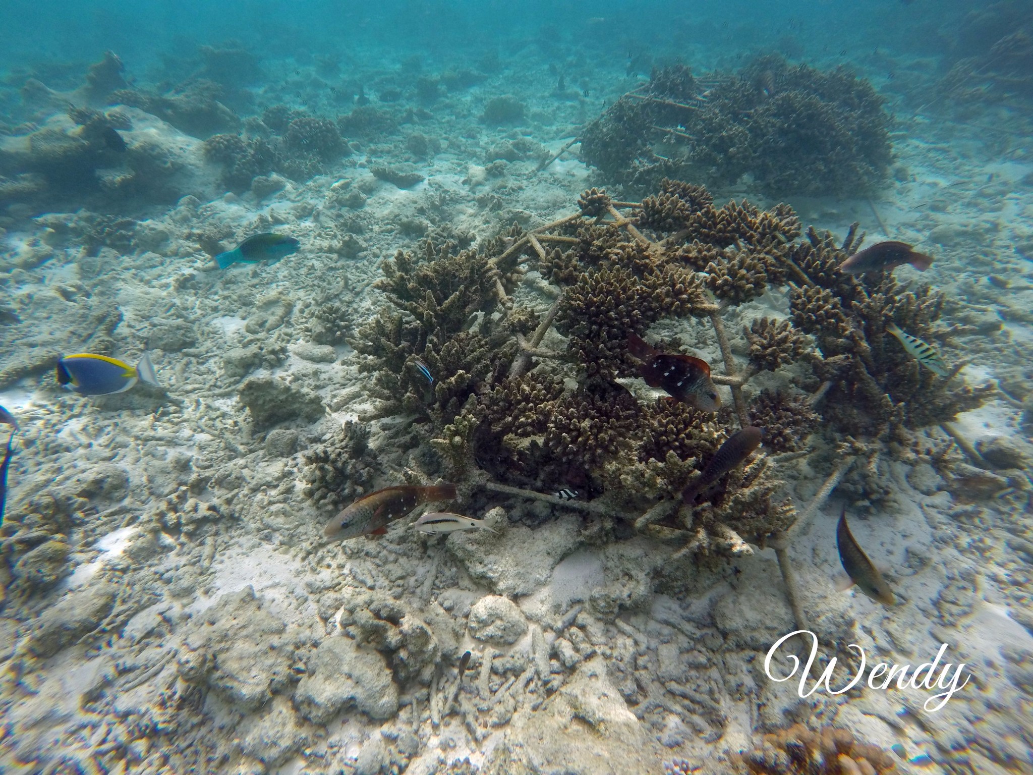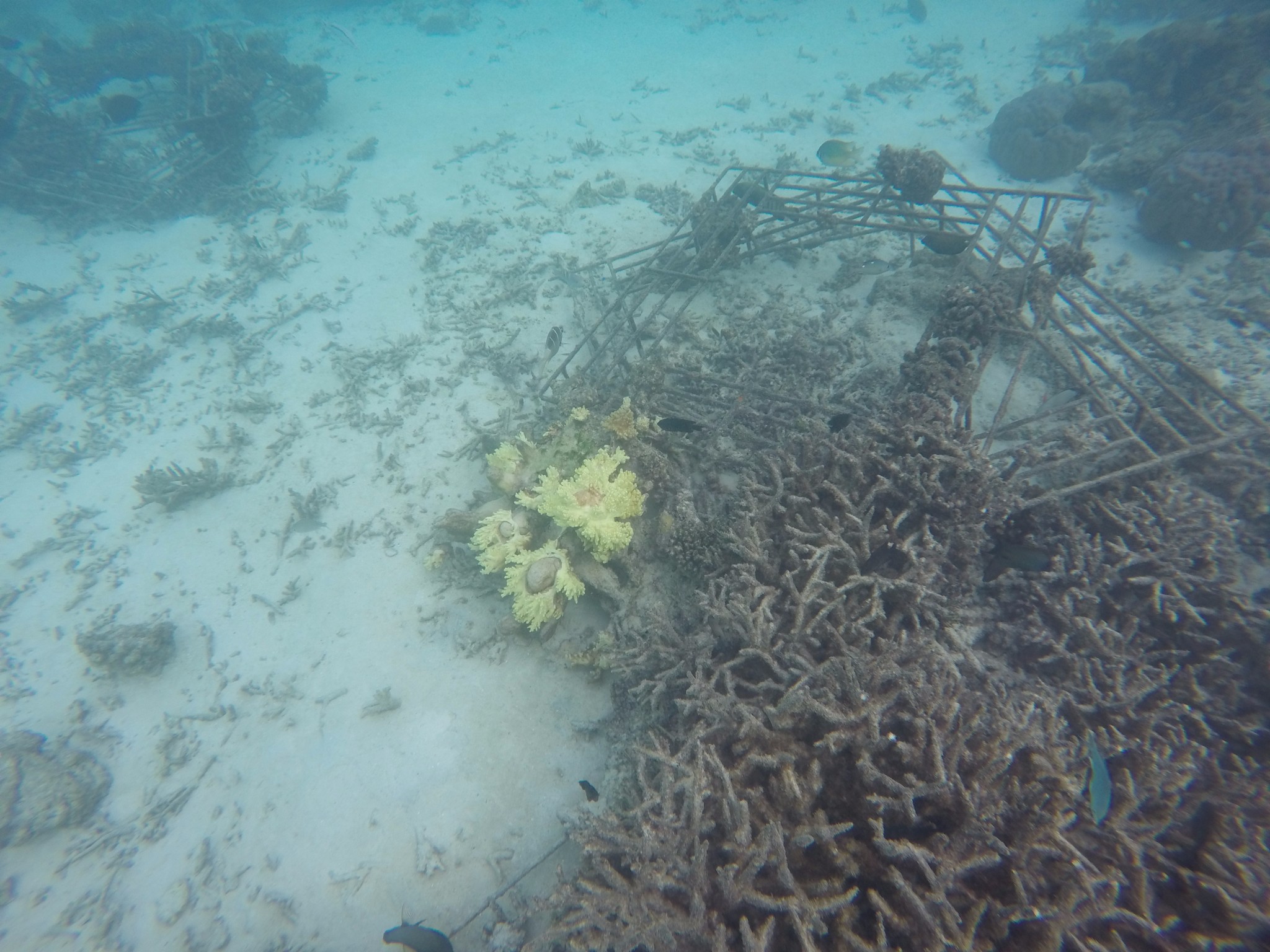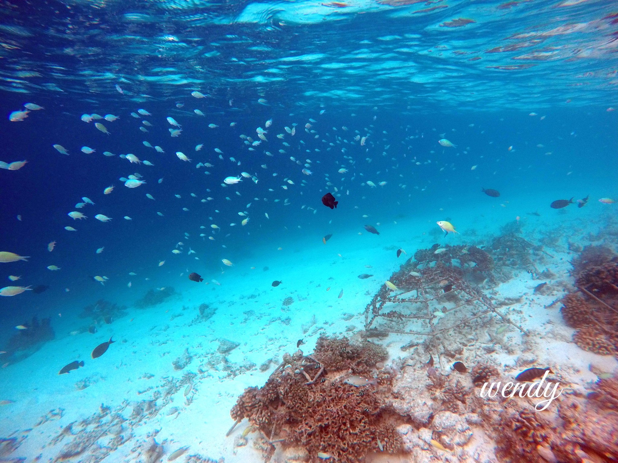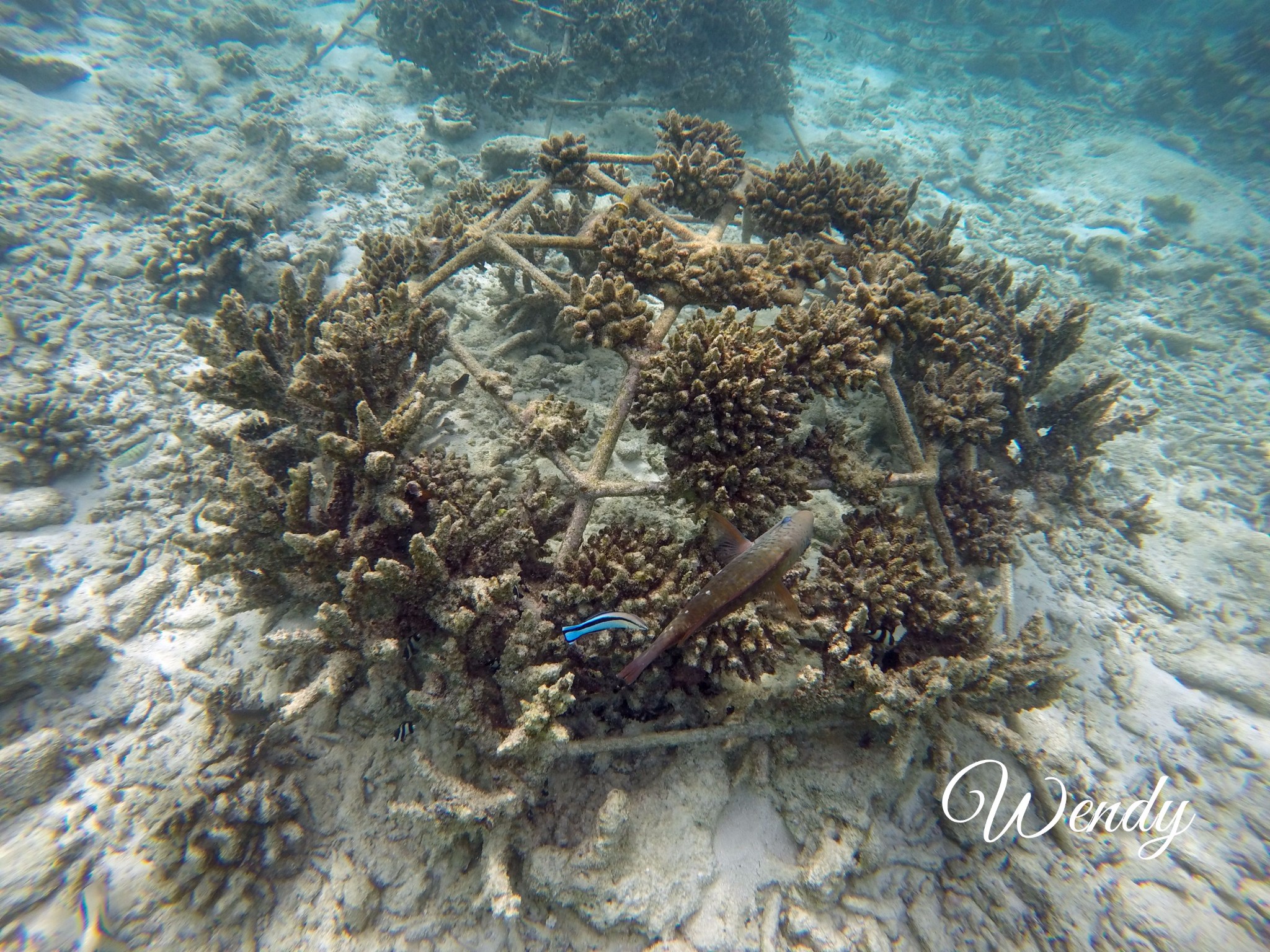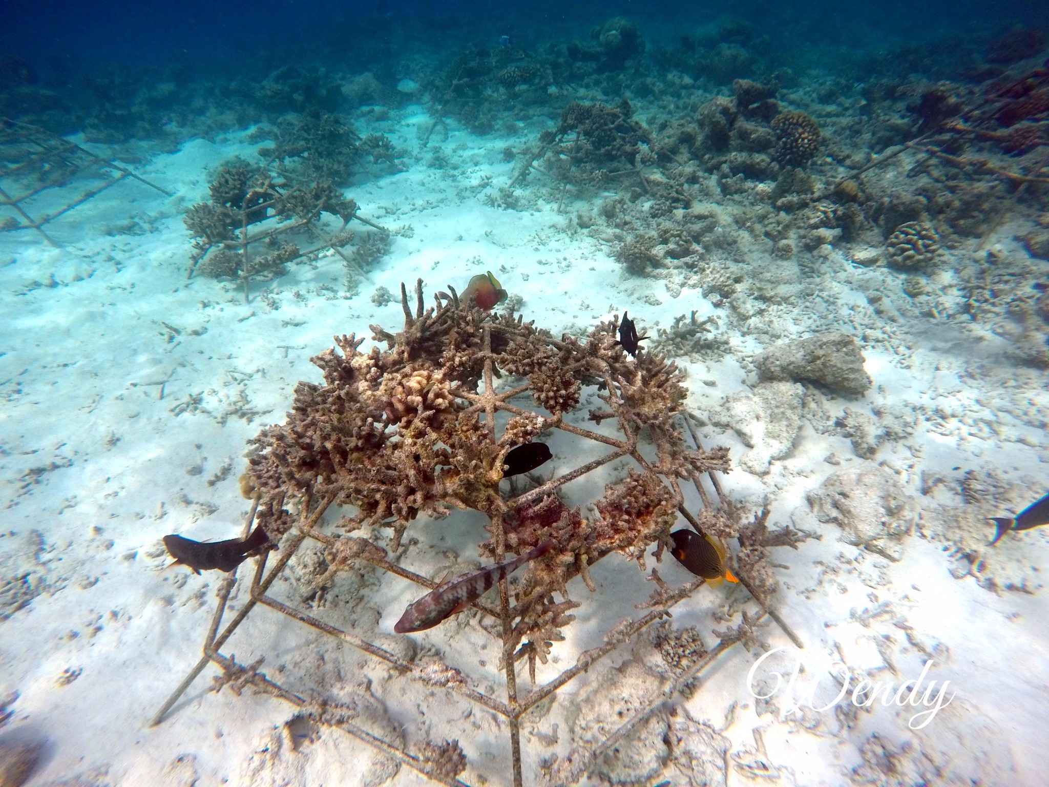 四季兰达浮潜靠豪华沙屋这一侧比较好,beach villa with pool,也是靠近码头和阿拉伯餐厅这一侧比较好。以下图片都是实物拍照,海里确实有很多种值珊瑚架,但是鱼确实很多很多,可能会有一些小伙伴说为什么会有这么多种植珊瑚啊,因为四季比较环保,为了保护珊瑚,四季酒店都有种植珊瑚的一项活动(是属于自费的活动),会在珊瑚架上写上种植人的名字,然后每年会汇报珊瑚的生长情况,这其实也是另外一种体验,感觉一辈子和四季兰达都在一起。自己种植的珊瑚像自己的宝宝一样,慢慢长大。虽然珊瑚一年才能长几厘米。