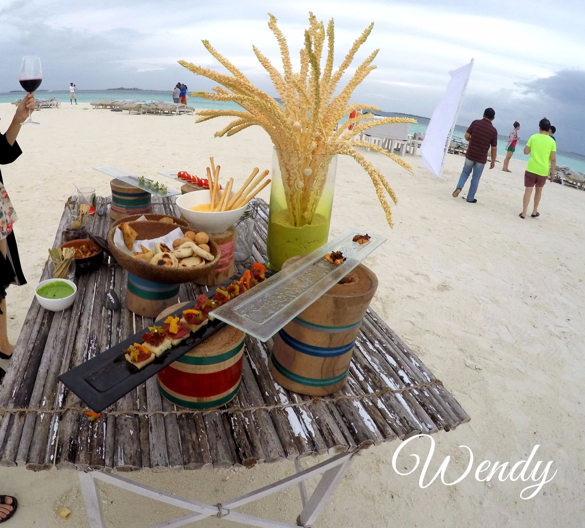四季酒店-兰达吉拉瓦鲁岛度假村每周五四季都会在拖尾沙滩有一个鸡尾酒会。然后会放一些小吃,还会有一些小型的寄居蟹比赛,还有儿童可以放放风筝,大家可以边听音乐,边看日落,边玩项目,边吃小吃还可以喝点鸡尾酒,这个是免费的。