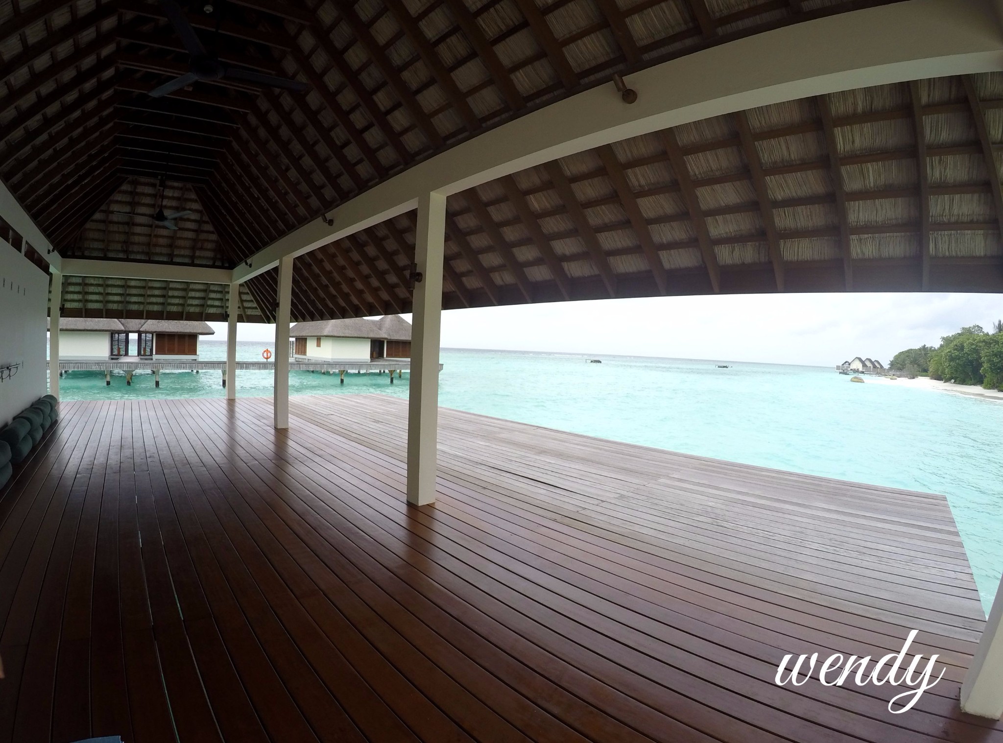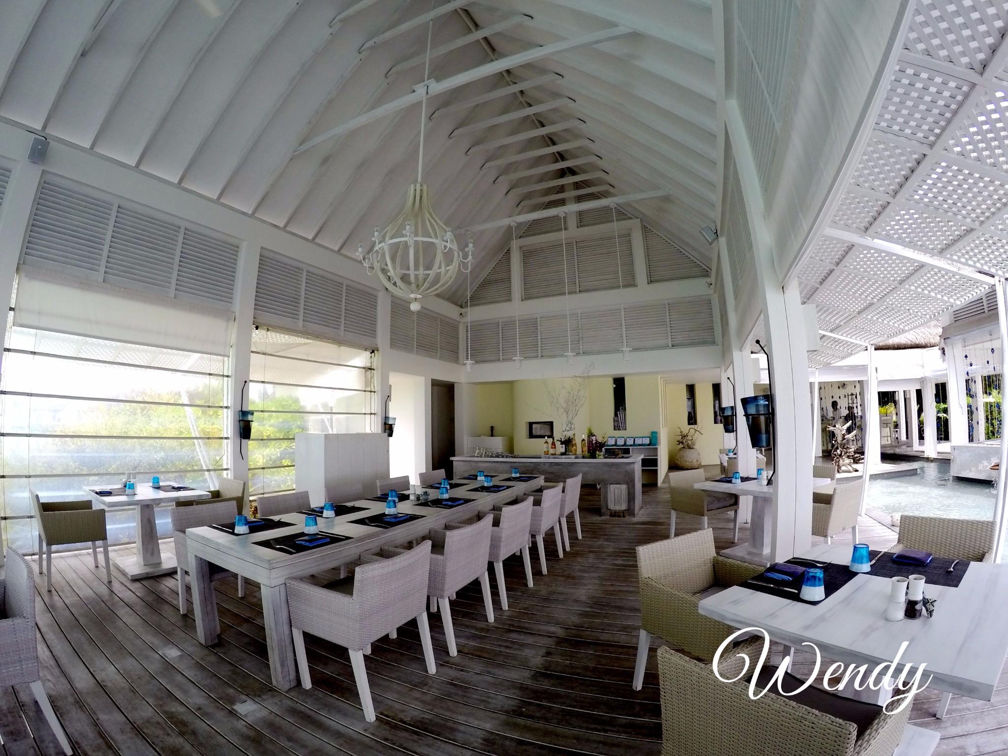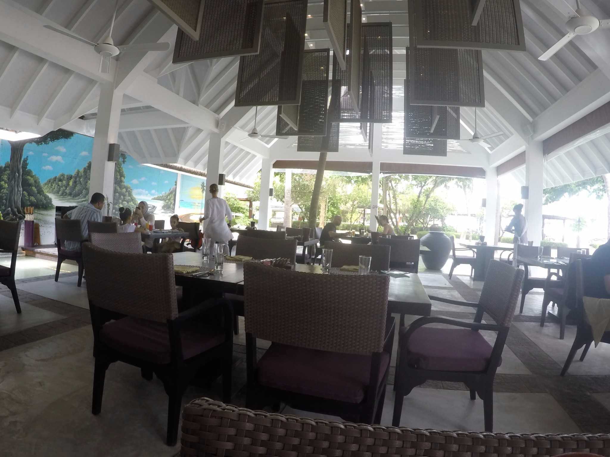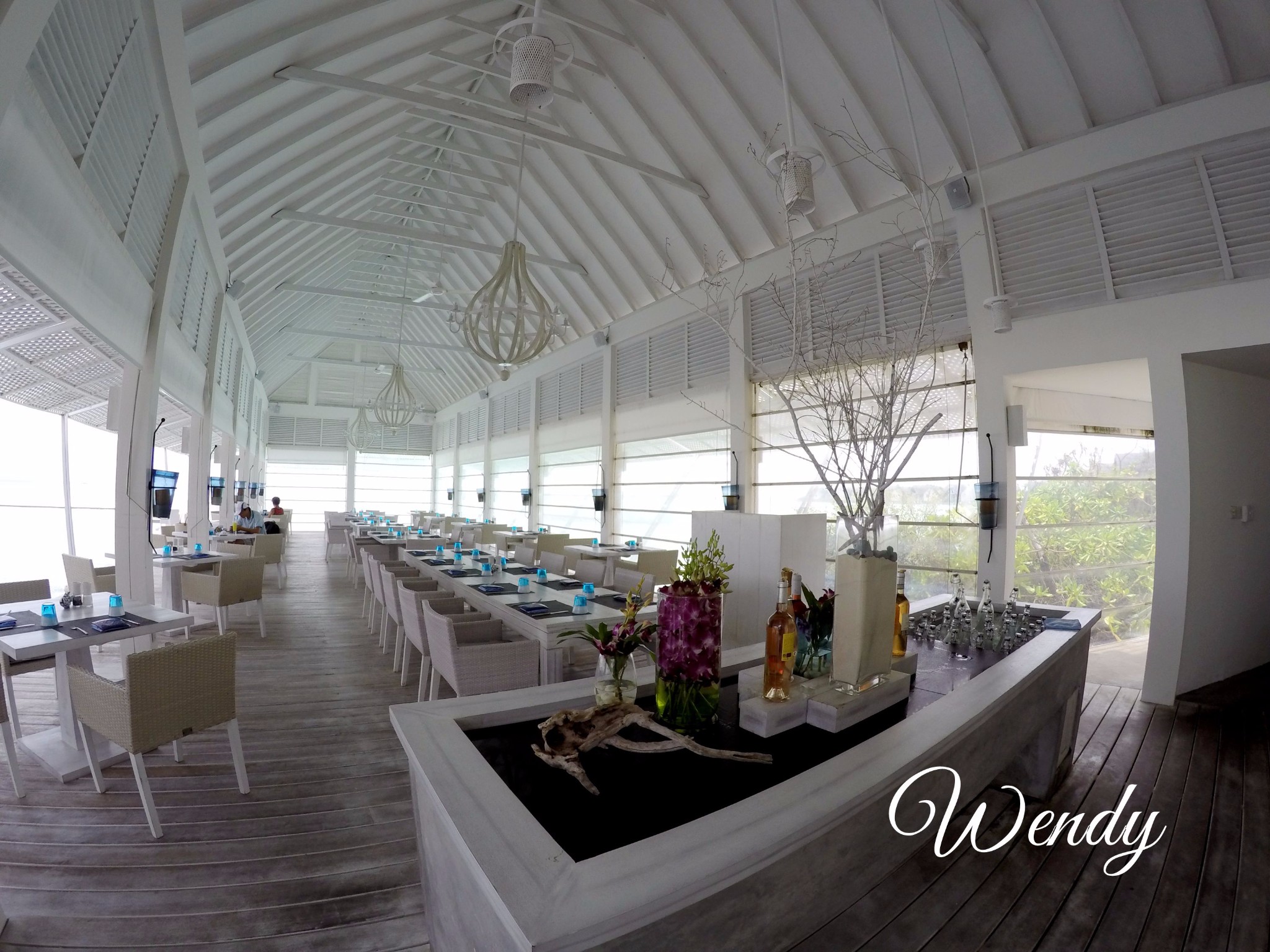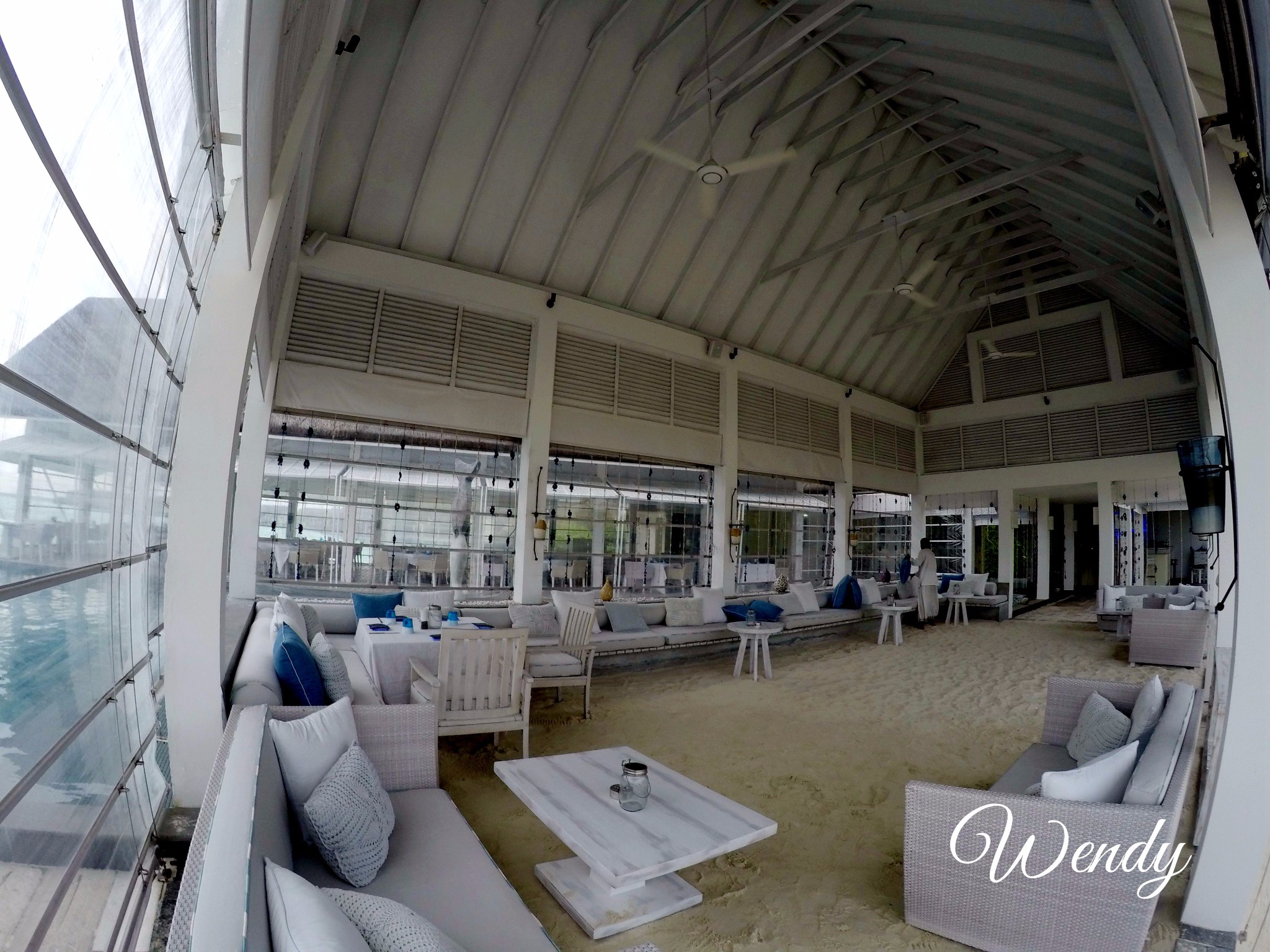 四季酒店-兰达吉拉瓦鲁岛度假村餐厅好有特色,不过我们刚开始在外面吃,吃着吃着下雨了,所以就搬进来吃了。