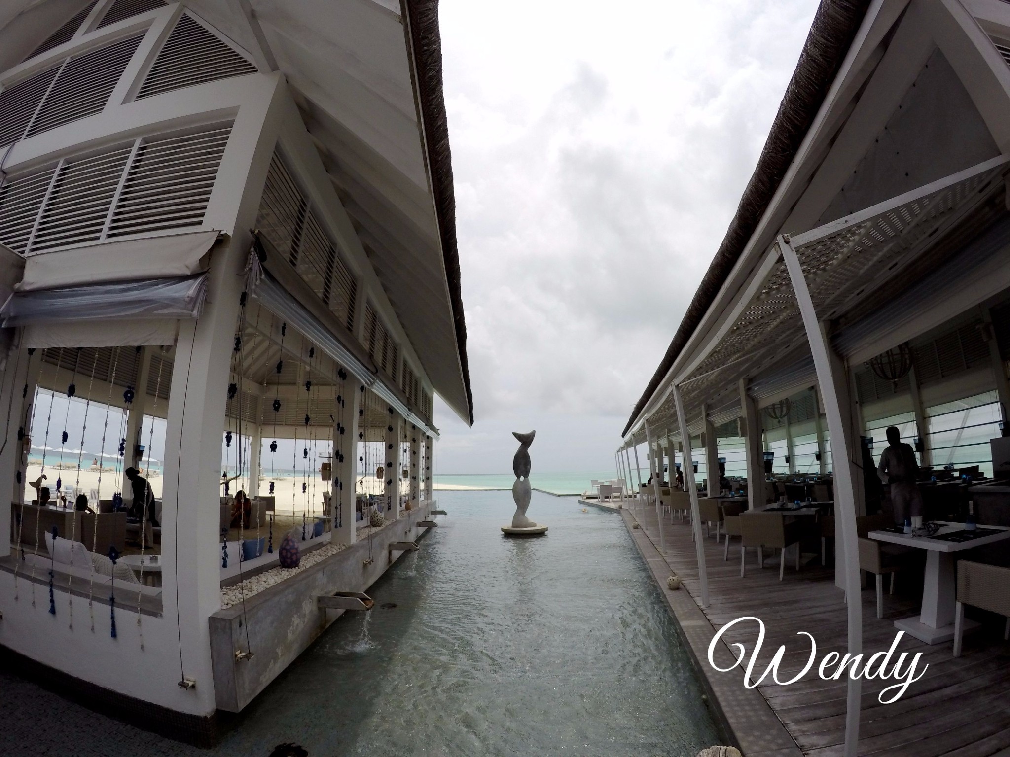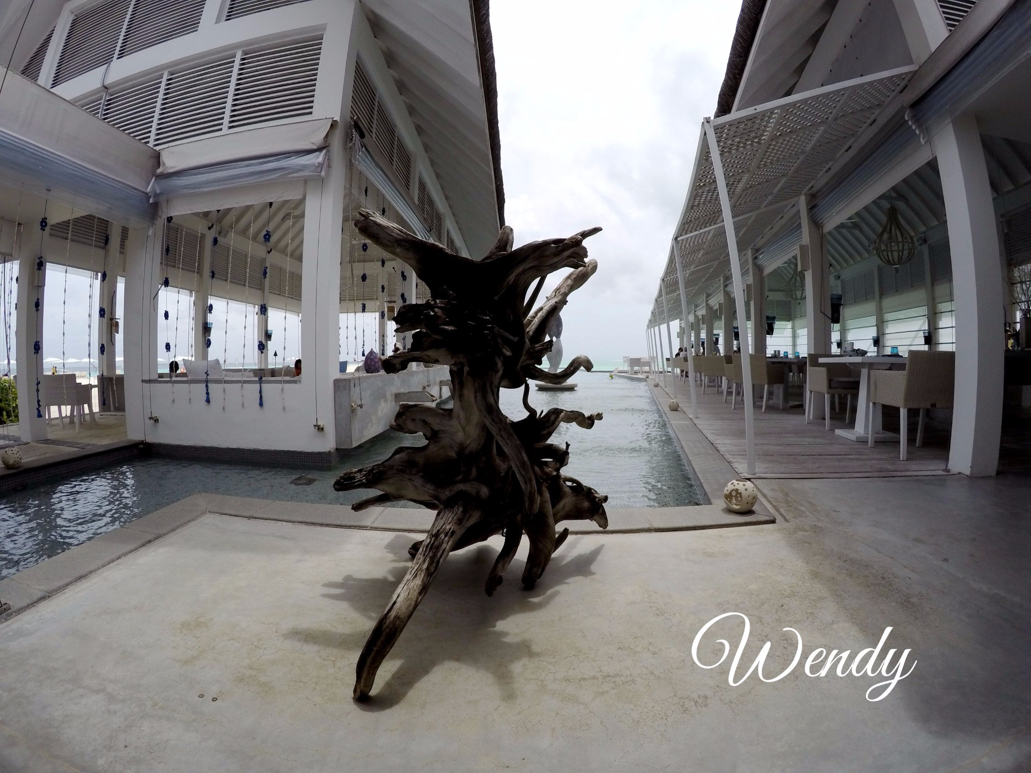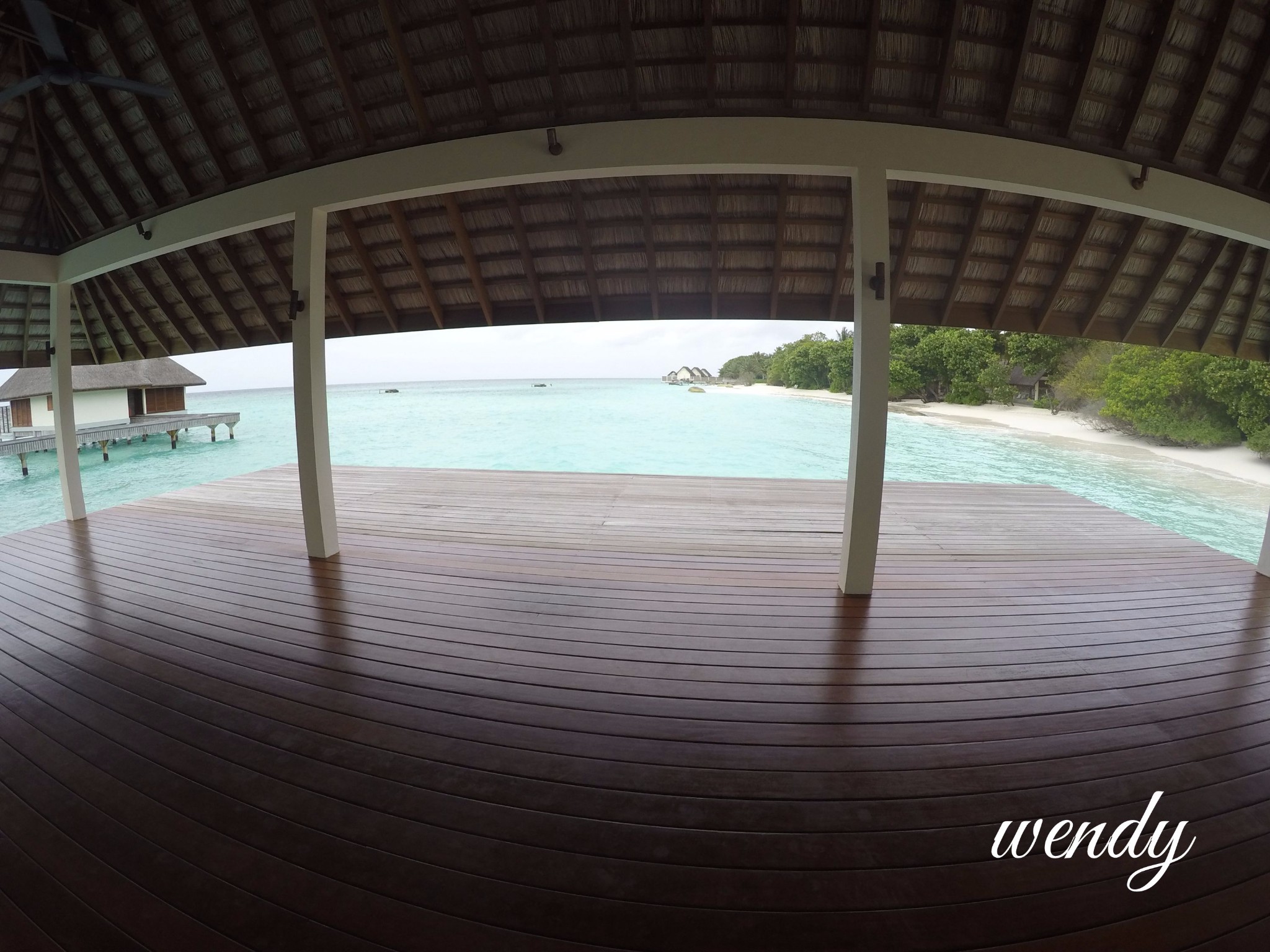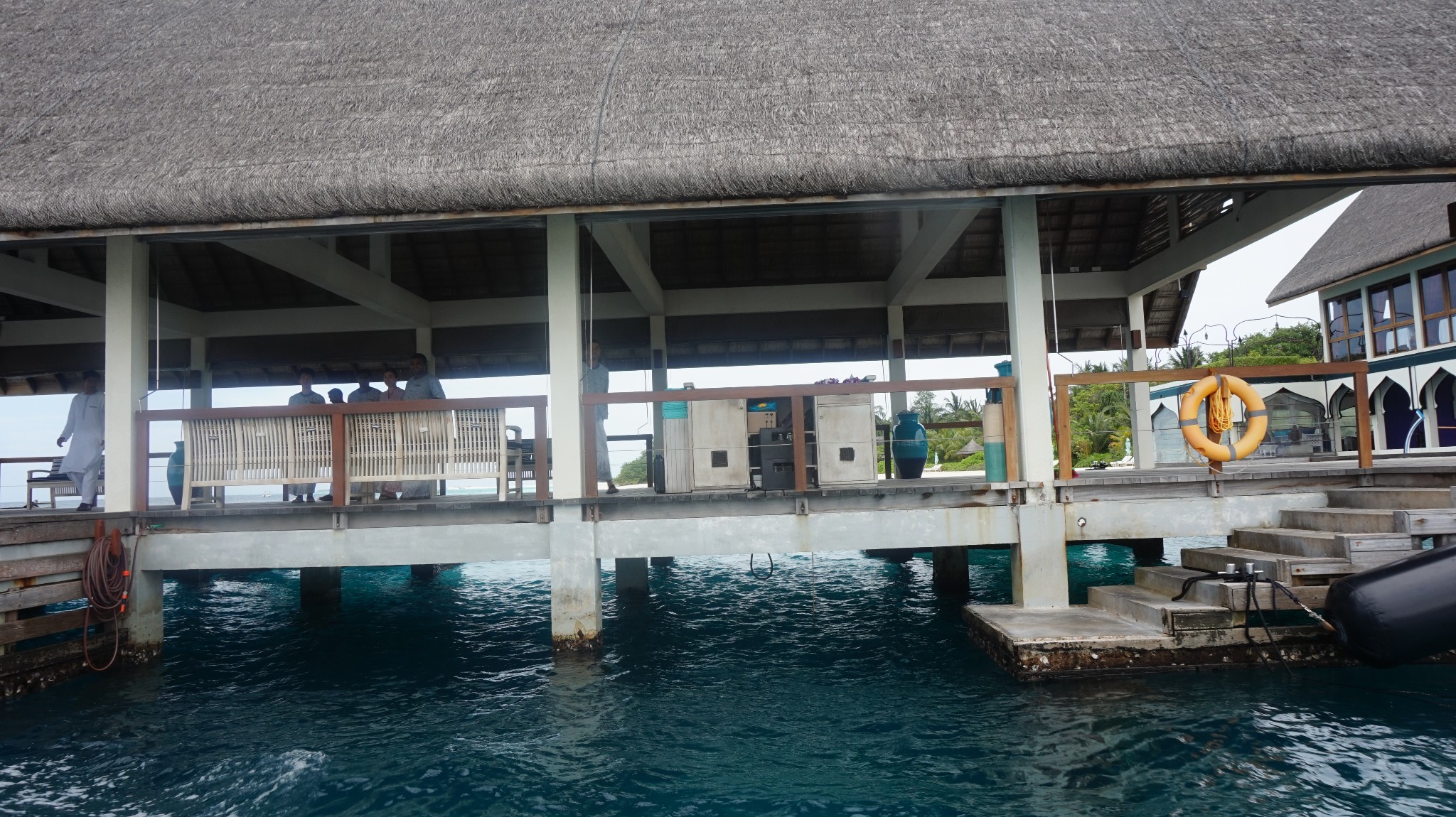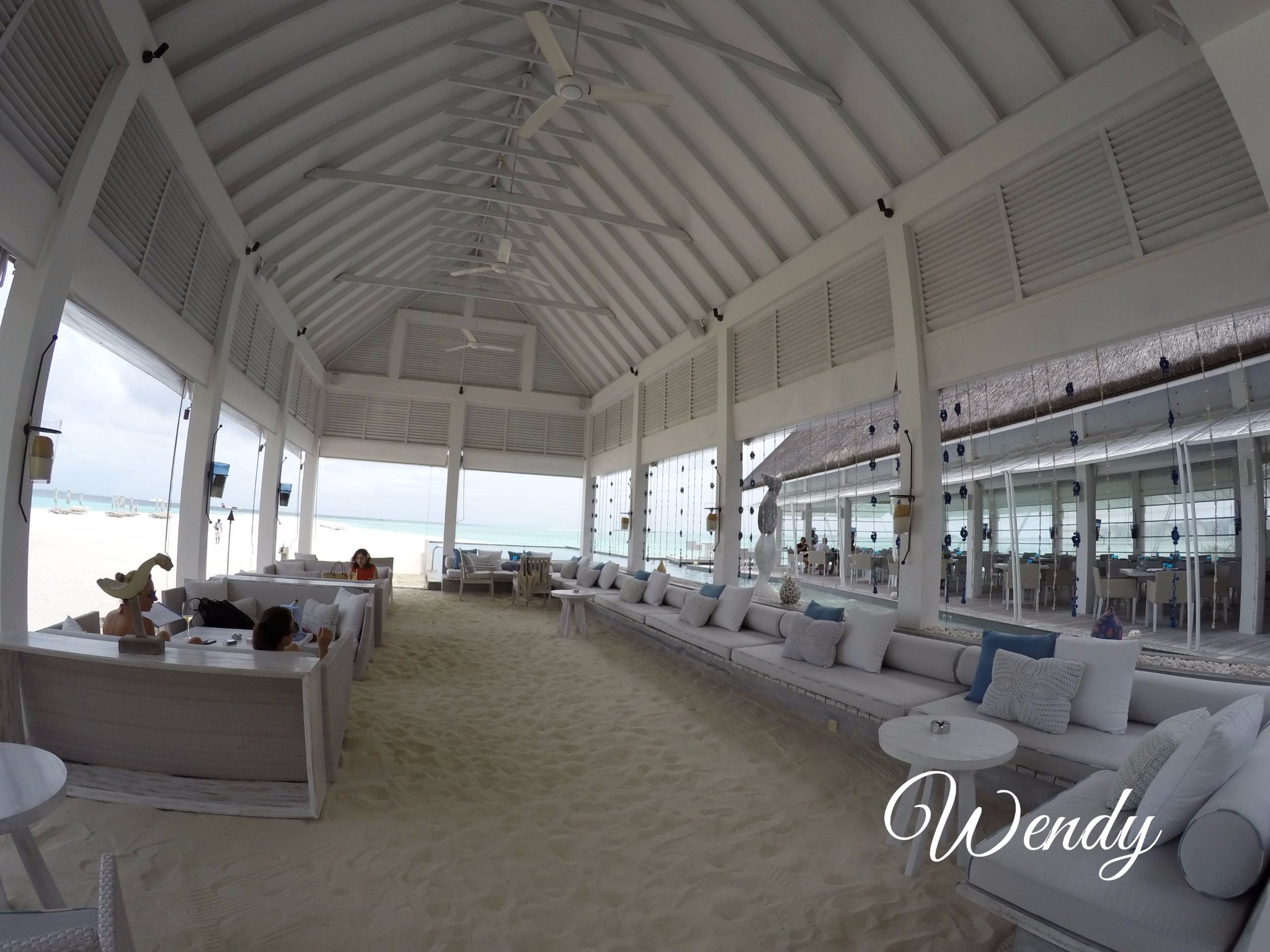 四季酒店-兰达吉拉瓦鲁岛度假村餐厅好有特色,不过我们刚开始在外面吃,吃着吃着下雨了,所以就搬进来吃了。