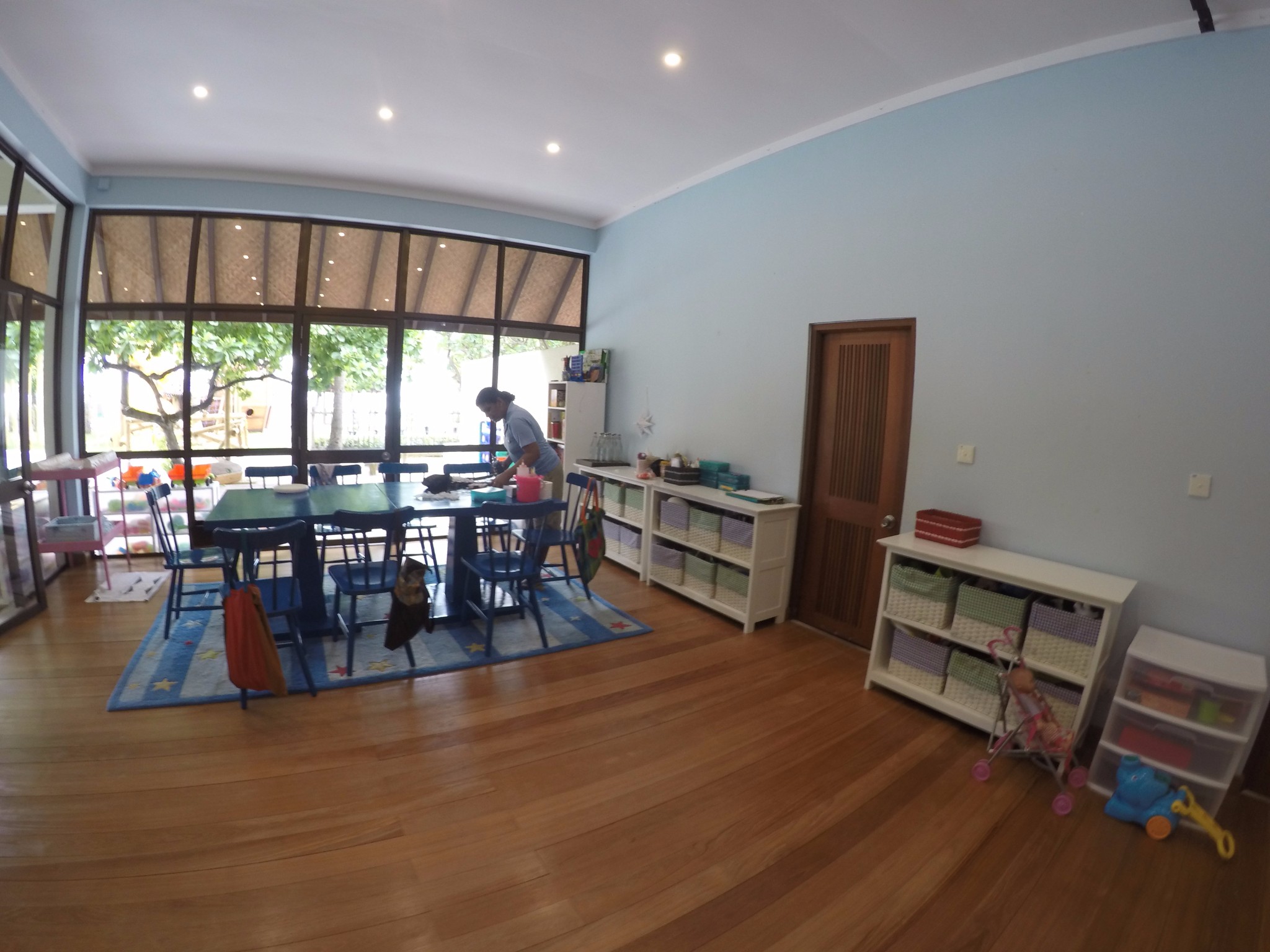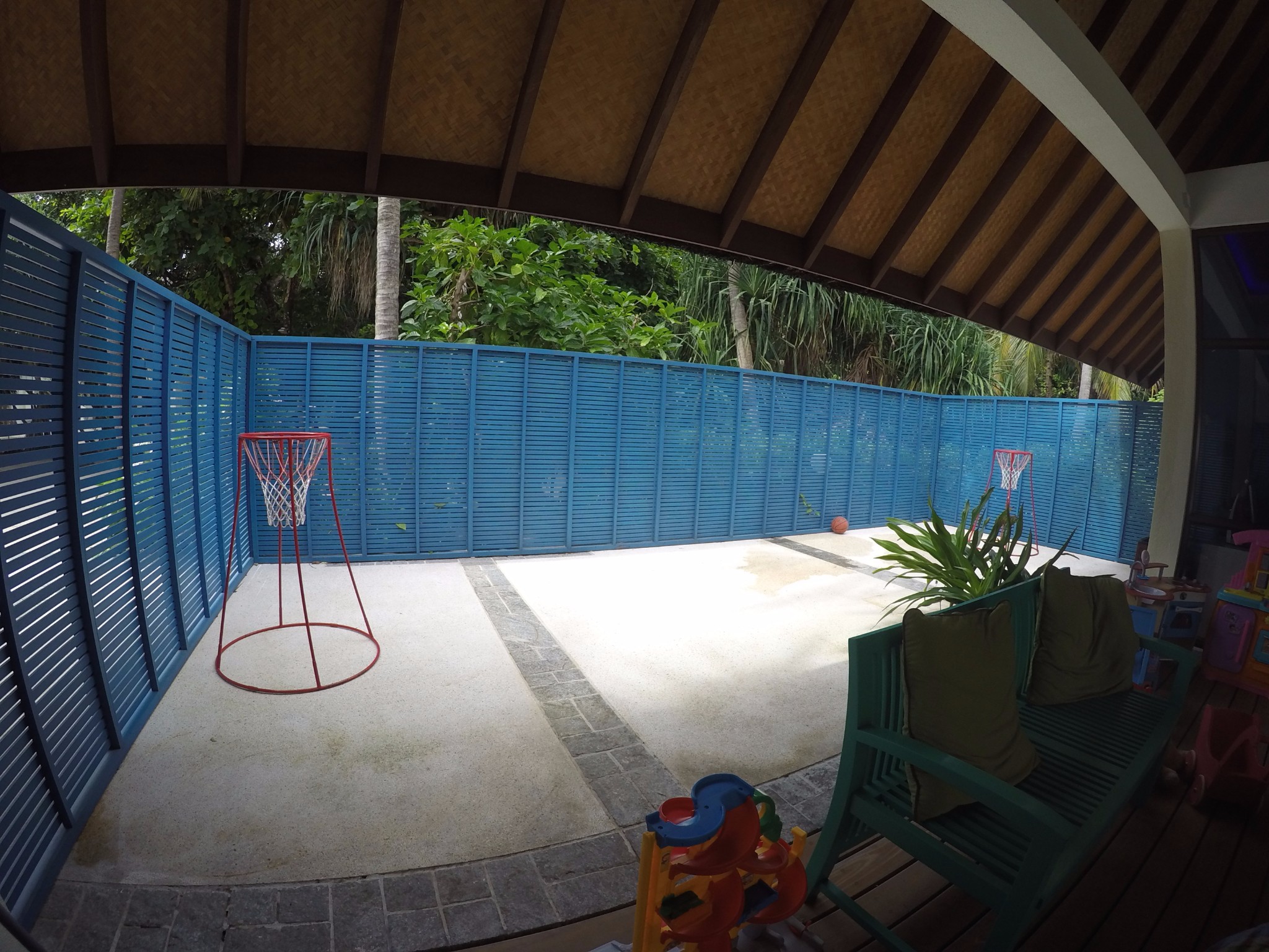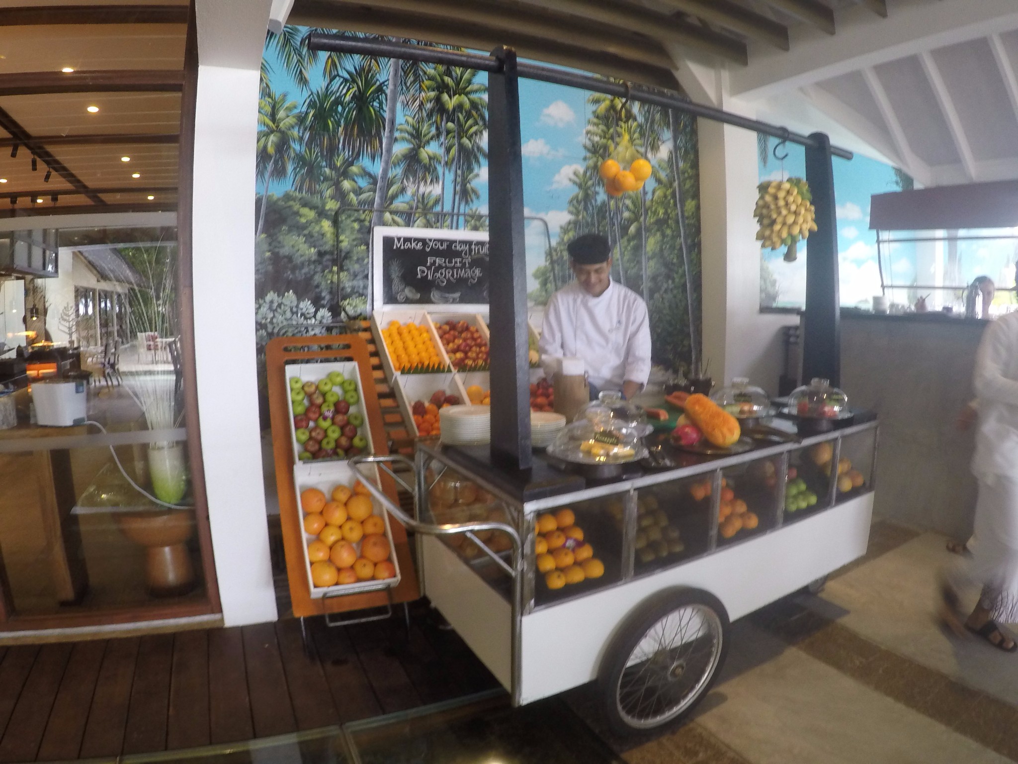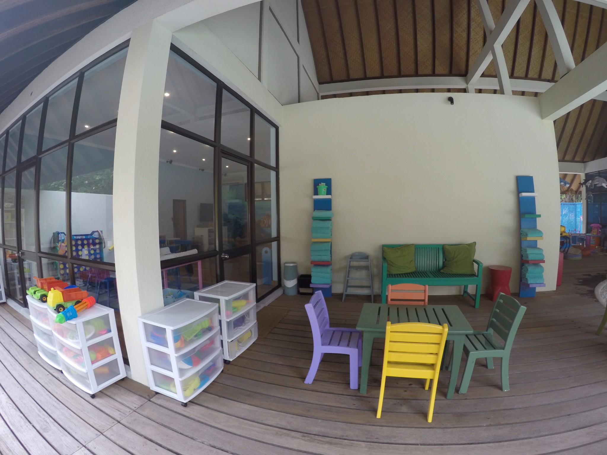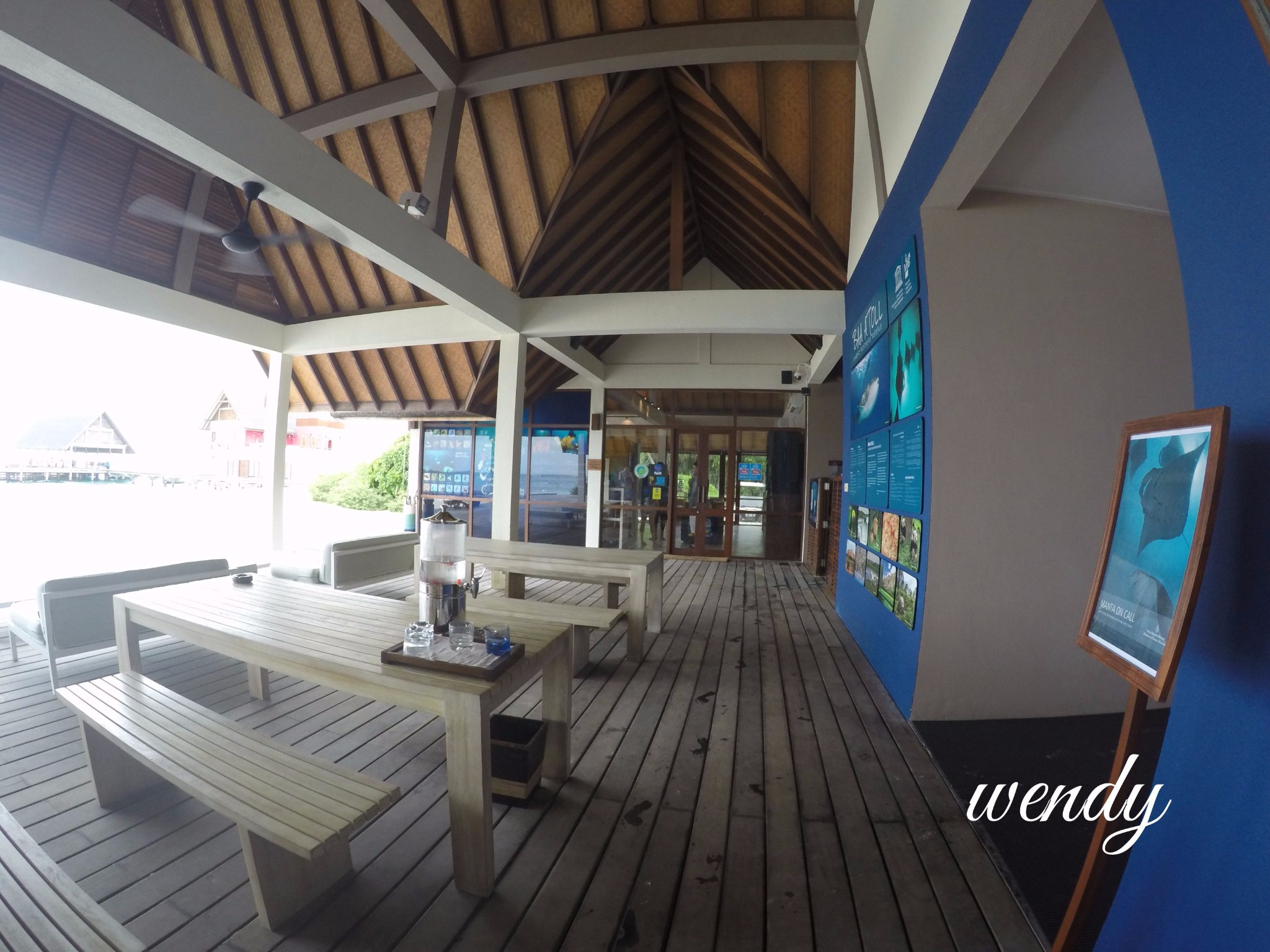 四季酒店-兰达吉拉瓦鲁岛度假村餐厅好有特色,不过我们刚开始在外面吃,吃着吃着下雨了,所以就搬进来吃了。